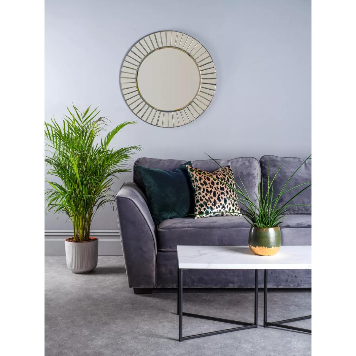 I love this round mirror for its clean, contemporary look and generous 80cm size, making it a versatile piece in various interiors. It works particularly well in minimalist or modern spaces, where its clear glass and subtle framing add depth without overwhelming the room. Practical styling tips include hanging it above a console or fireplace to create a focal point, or using multiple mirrors to reflect light and expand smaller rooms. It's also great in bathrooms or bedrooms, where it combines functionality with sleek design. Keep the surrounding decor simple to let the mirror stand out, or pair it with textured materials for a balanced, layered aesthetic.
