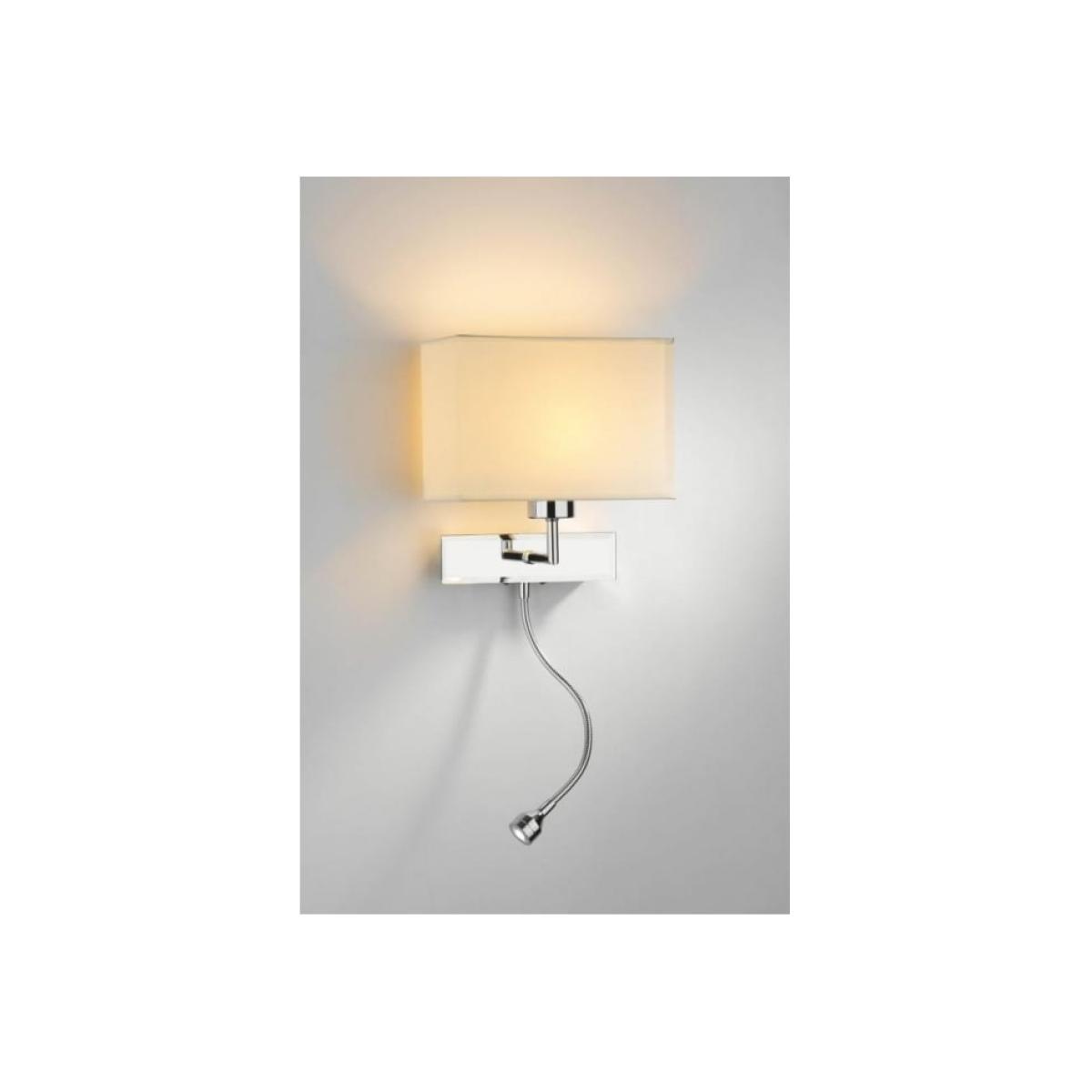 Amalfi AMA0750 polished chrome wall bracket with LED flexi-head reading light (fitting only). LED + main light independently switched. Rectangular shades to be ordered separately, available in cream(S1025).