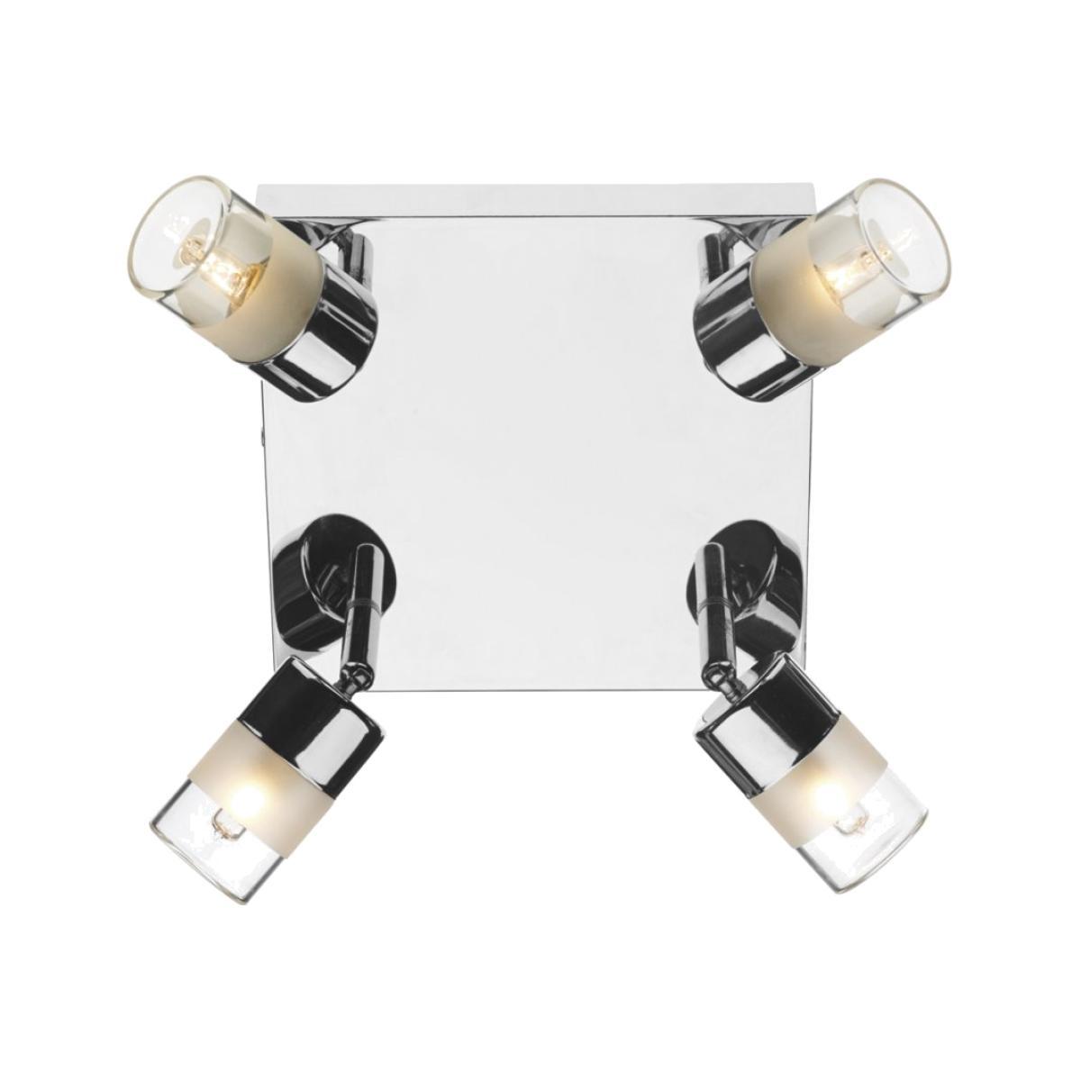 The ARTEMIS 4 Light Plate has a polished chrome ceiling plate and clear and frosted glass postionable shades. IP44 rated so is suitable for use in bathroom zones 1 and 2 or anywhere water spray is a risk.