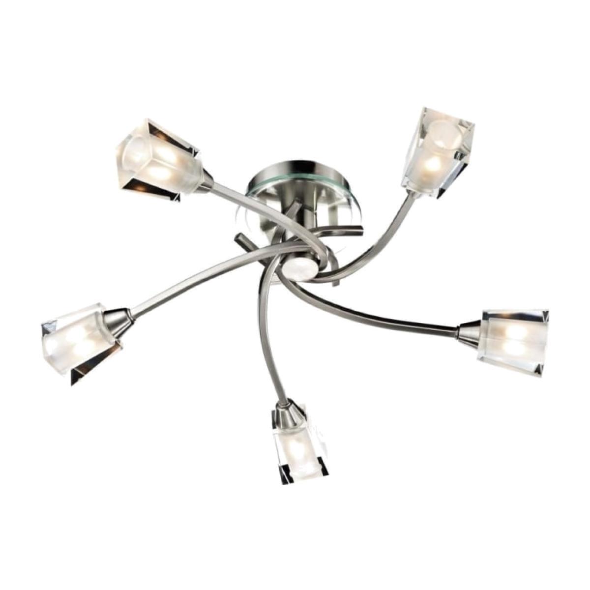 The AUSTIN 5 Light Semi Flush has clear glass shades with frosted inner detail and a satin chrome frame.
