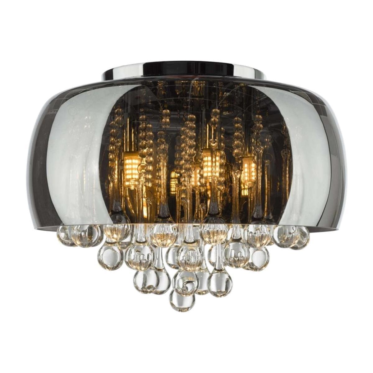 TheAviel 5 light flush ceiling lightfeatures a smoked glass shade that encases mu Lightiple tiers of clear glass droppers. When lit, the inner glass beads are revealed as the light reflects around the inside of the shade, and this fitting looks just as spectacular when off. Perfect for adding a luxurious look to your bedroom, or lounge.
