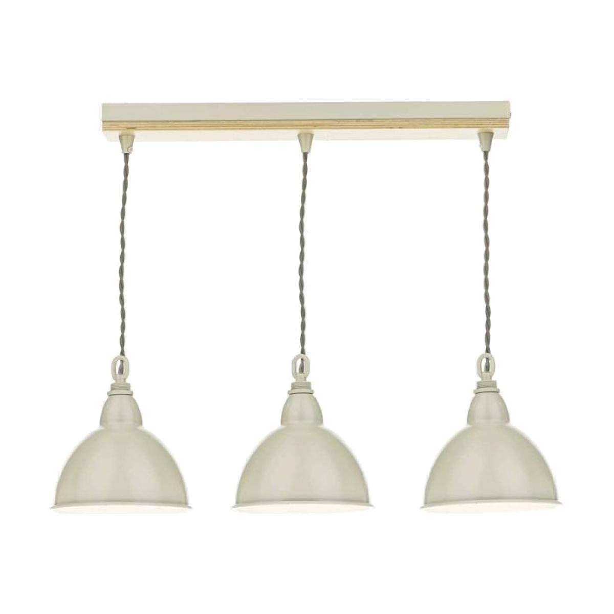The BLYTON 3lt Bar Pendant features a lightwood frame and a trio of metal retro-styled shades in cream. This pendant is fully height adjustable at point of installation.