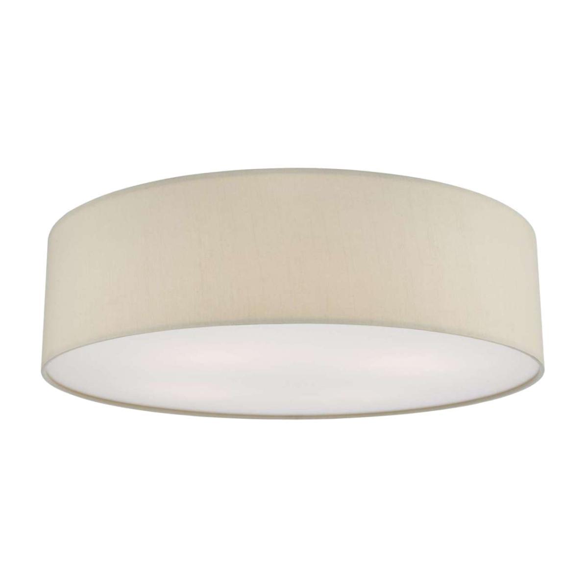 The minimalistic Cierro flush 4-lightin Taupe features a round faux silk drum shade with a frosted acrylic diffuser that produces a lovely soft light when lit.