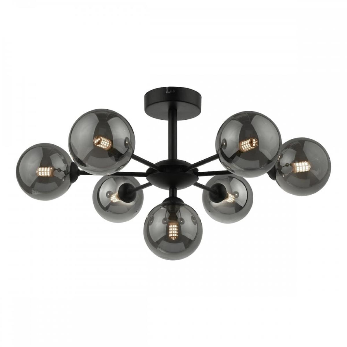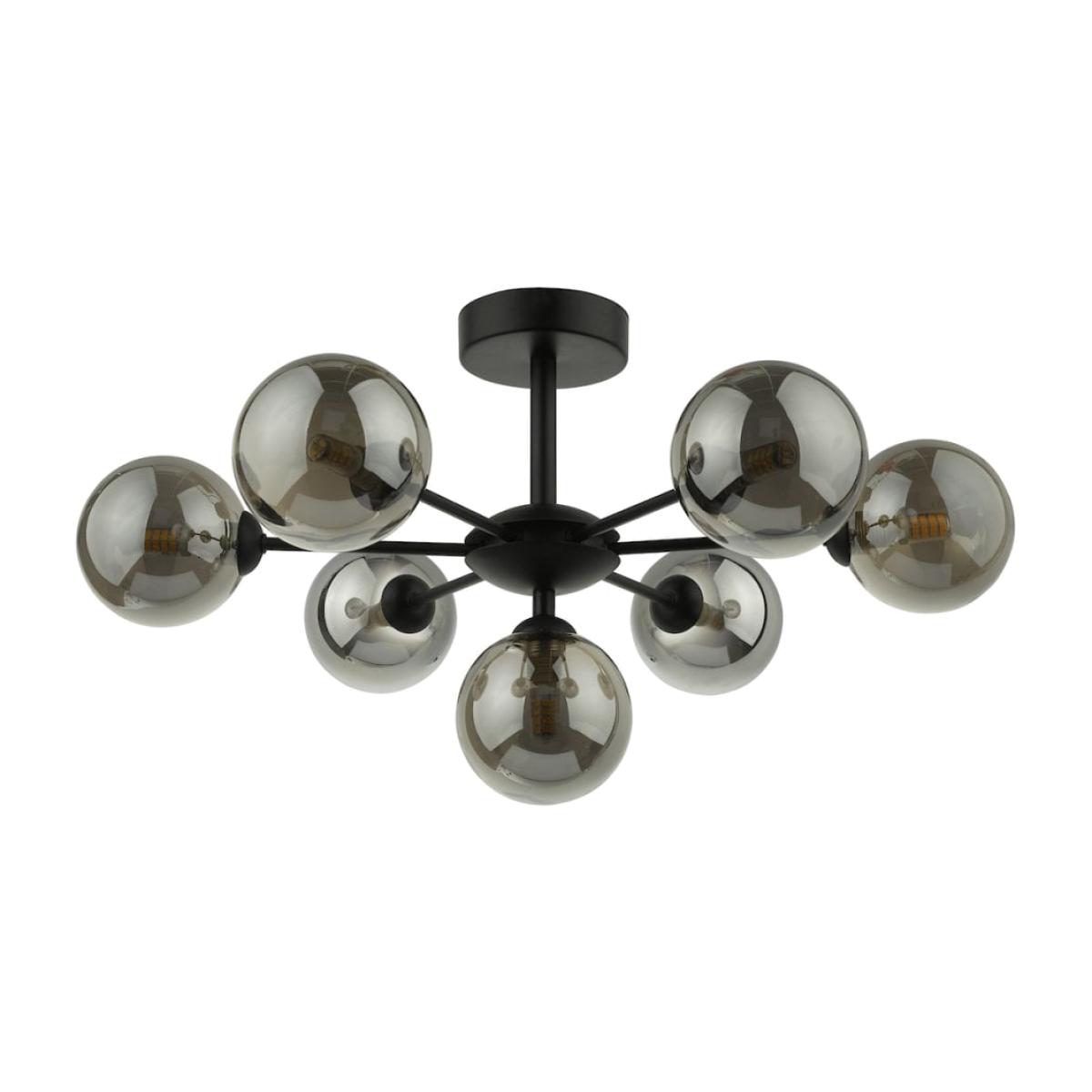 The Cohen 7 light semi-flush ceiling light in matt black and brilliantly reflective smoked glass shades is a more modern stripped down take on the sputnik chandelier popularised in the sixties when the space race was capturing the imaginations of designers and home owners alike. It’s small height lends it’s self to modern houses where ceiling heights are often quite low, having seven lights means it has plenty of light when needed. Perfect for living rooms, dining rooms or even bedrooms. Colour: Black. Lamp Holder Type: G9. Maximum Bulb Wattage: 40. Bulb Included: No. Number of Bulbs: 7.
