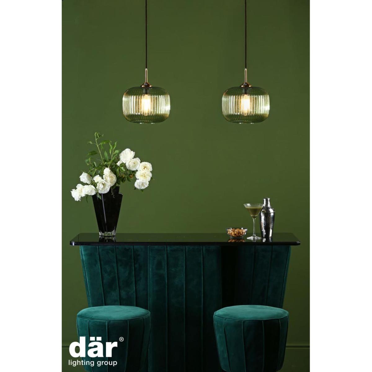 dar lighting Dem0124 Demarius 1 Light Pendant Green Glass Bronze Detail