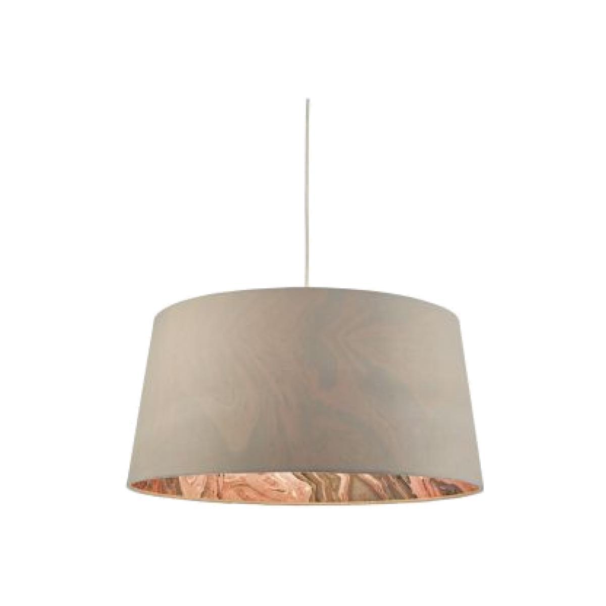 Dolores is a grey, faux silk tapered drum that features a striking marble-effect and a coral interior, that shows through when illuminated.