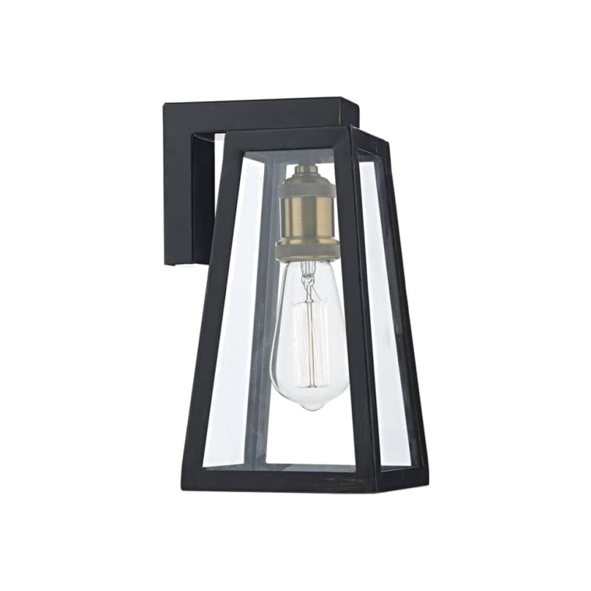 The DUVAL is animpressive outdoor rated IP43 vintage style wall light. It comes in a matt black and distressed gold, featuring a copper finished lamp holder and clear glass panels.