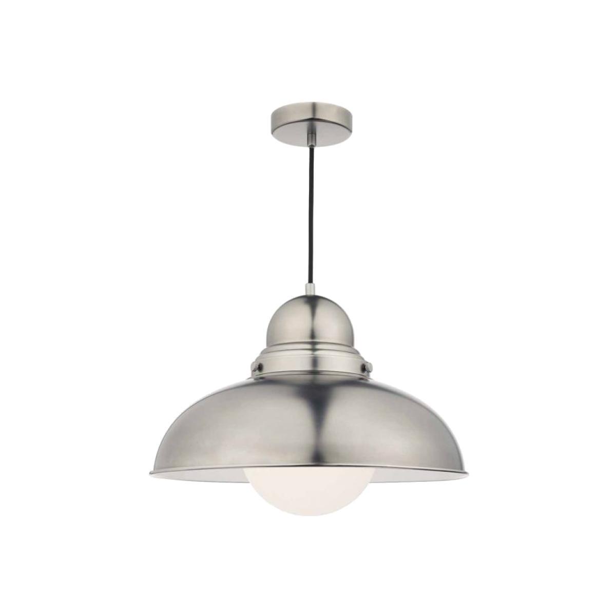 This DYNAMO light features an antique chrome ceiling plate and a metal retro-styled shade in antique chrome. It comes complete with an opal white glass diffuser. The black braided cable adds an authentic feel to this larger pendant. This pendant is fully height adjustable at point of installation.