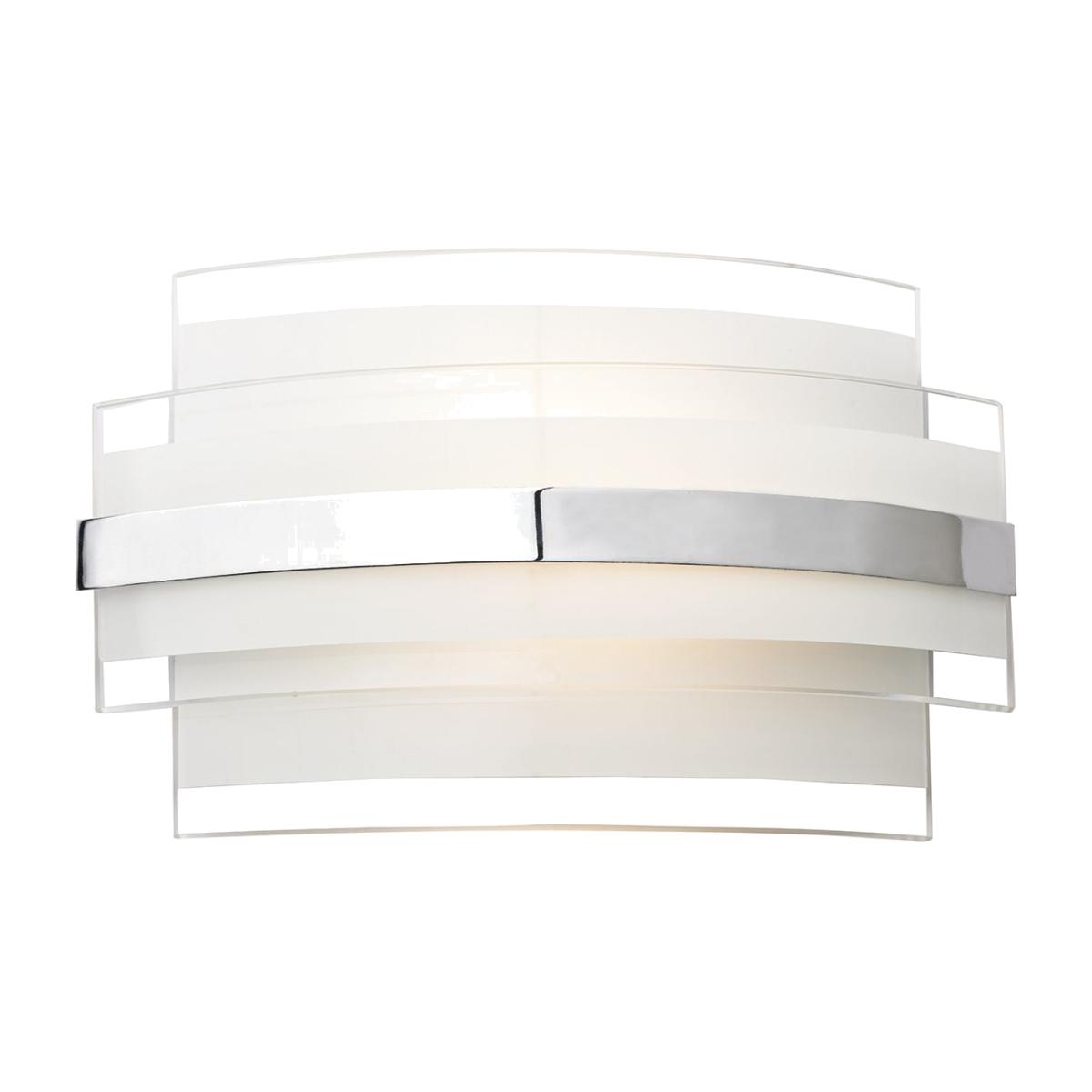The EDGE LED Wall Light features a clear and frosted glass shade with polished chrome bands. Colour: Glass. Bulb Type: LED. Maximum Bulb Wattage: 5. Bulb Included:Yes. Number of Bulbs: 1.