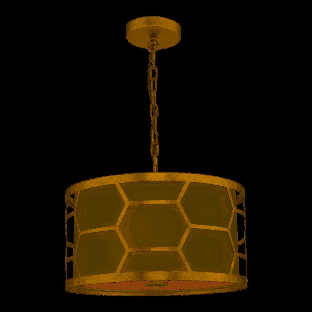 TheEpstein 3 Light Pendant EPS0312an eye-catching laser cut metal pendant. Lined with an ivory linen shade in, this fitting has a hand applied distressed gold leaf finish and white frosted acrylic diffuser. This pendant looks fabulous paired with it’s matching wall light EPS0712.