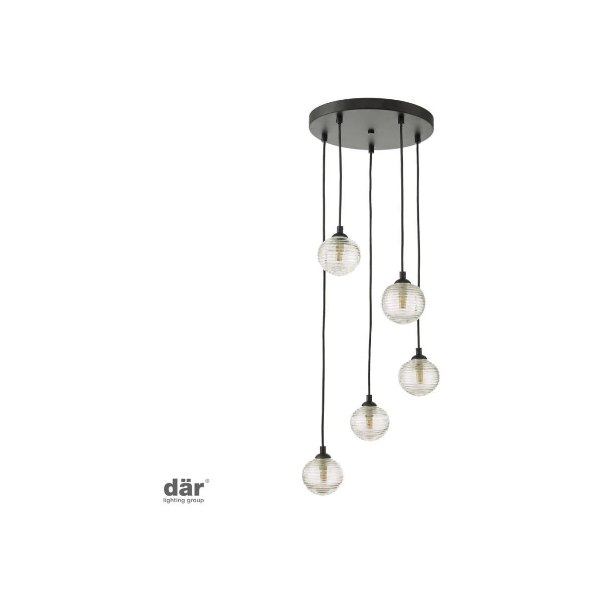 TheFederico spiral cluster pendantis a minimal design in matt black with 5 spiralling glass shades of clear ribbed glass. We find it’s minimalism so versatile and refreshing, it’s just at home as a stairwell light as it is lighting a dining table or over a bed. The black fabric cable can be adjusted on installation but if you want to go very short you will need the help of an electrician.