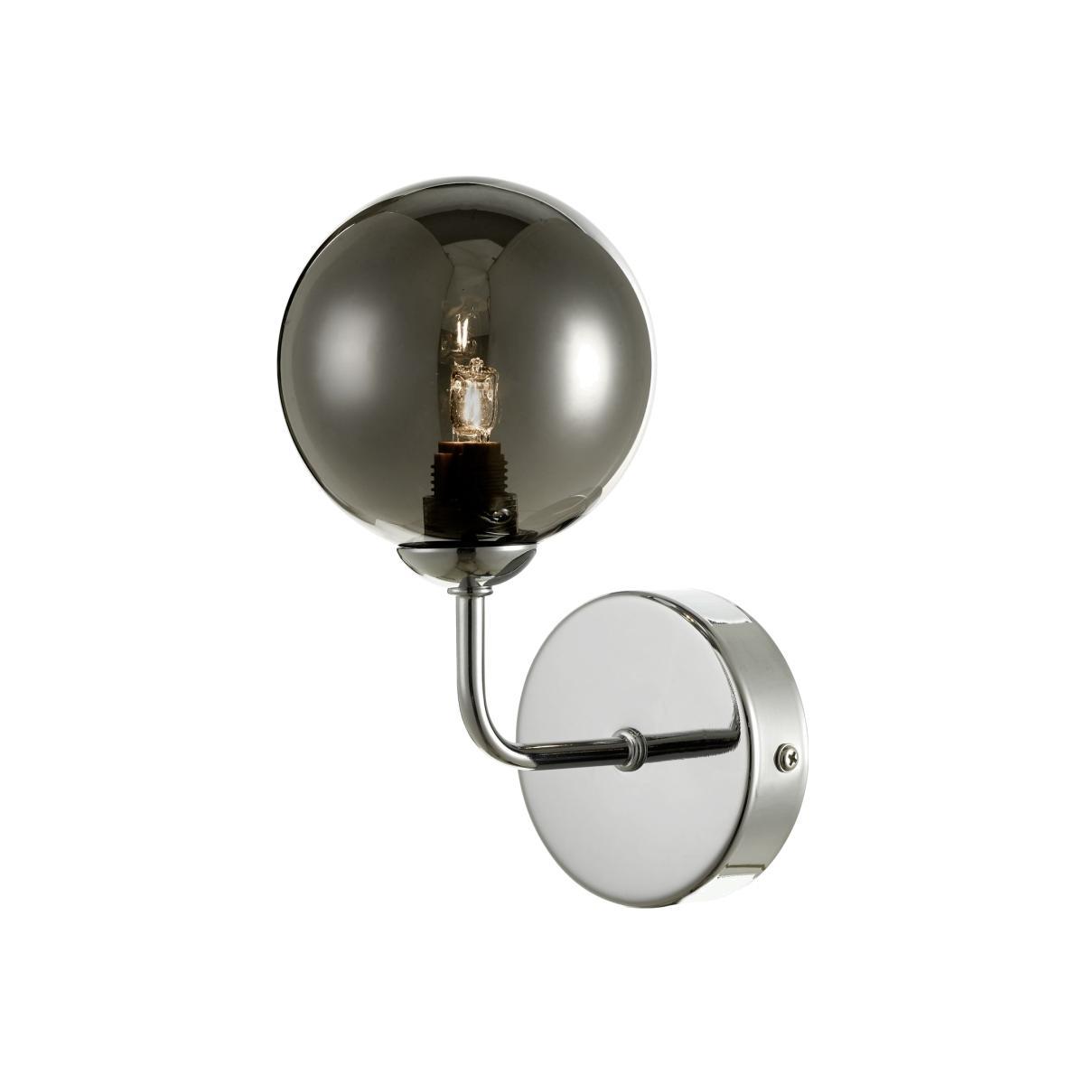 The FEYA Wall Light in polished chrome and smoked glass. A simple wall light that looks at home in most modern interiors, place it over a bedside table or even in a hallway to bring. The polished chrome with smoked glass shades has a modern monotone style. The simple graphical design with large radiuses looks modern and fresh, working equally well against bold colours or monotone interior design schemes.
