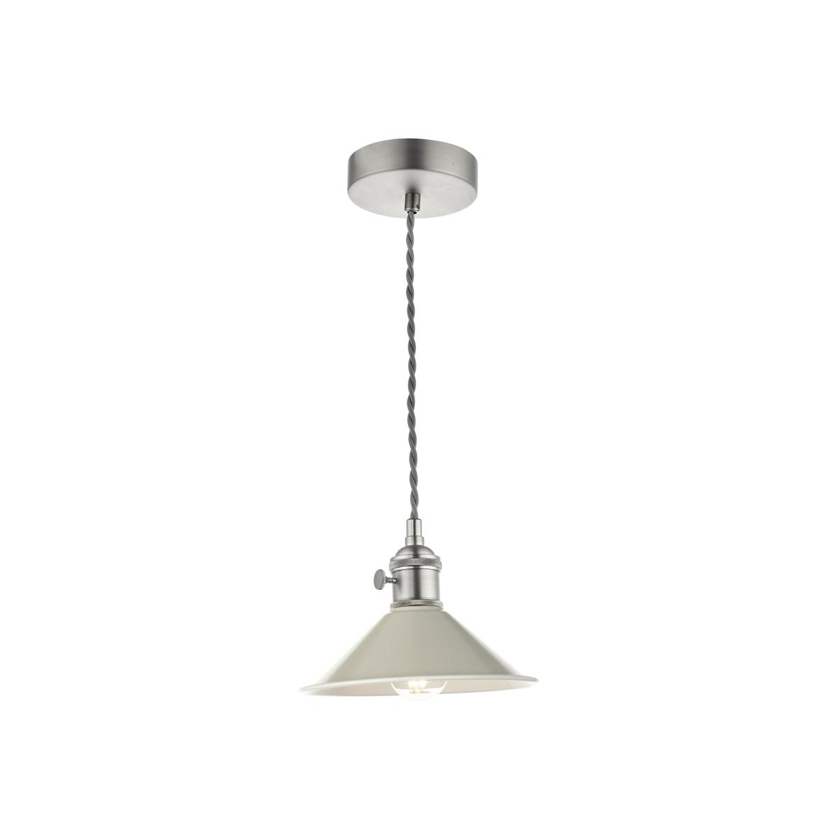 Introducing the dar Lighting HAD0161-06 Hadano 1 Light Pendant, a stunning blend of contemporary design and vintage charm. Finished in an elegant antique chrome, this pendant light features a beautifully crafted cashmere shade that adds warmth and sophistication to any space. The design elegantly diffuses light, creating a soft, inviting glow that enhances your interiors, whether in the dining room, living area, or hallway. Ideal for both modern and traditional settings, the Hadano pendant serves as a statement piece while complementing your decor. Its adjustable height ensures versatility, allowing you to achieve the perfect look in any room. Easy to install and maintain, this pendant light combines style and functionality seamlessly. Illuminate your home with the exquisite Hadano 1 Light Pendant and elevate your ambiance with its unique charm. Perfect for those seeking a touch of elegance in their lighting choices. Make a statement with the Hadano pendant today!.