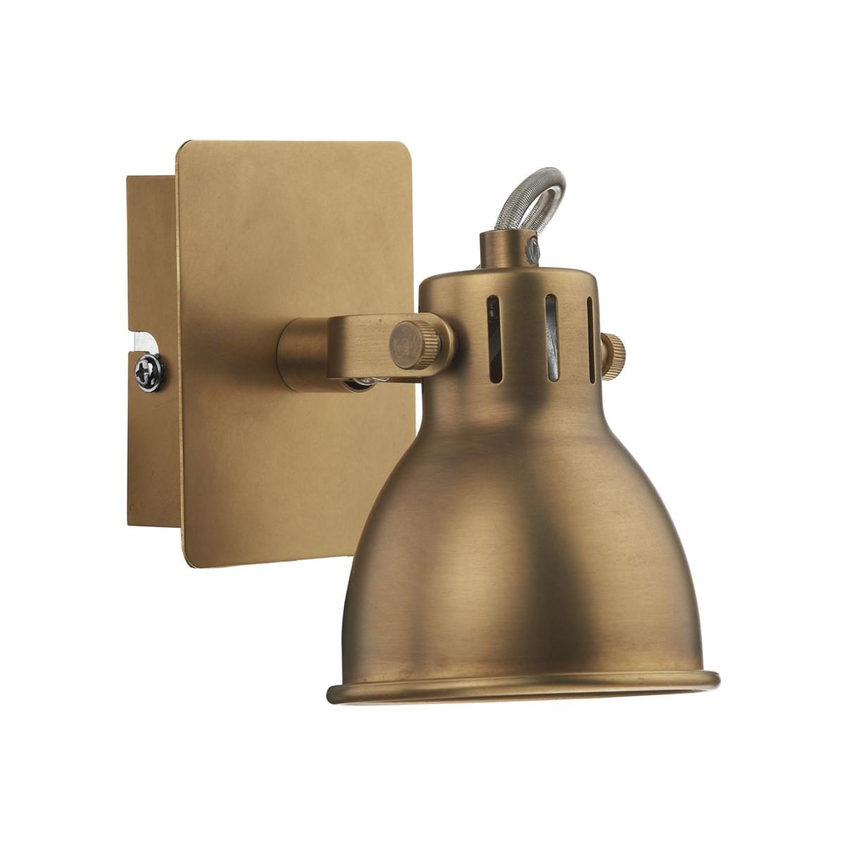 The IDAHO 1 Light Wall Light features a natural brass ceiling plate and postionable spots. This wall light is rocker switched. Colour: Brass. Lamp Holder Type: GU10. Bulb Type: Reflector. Maximum Bulb Wattage: 35. Bulb Included: Yes.