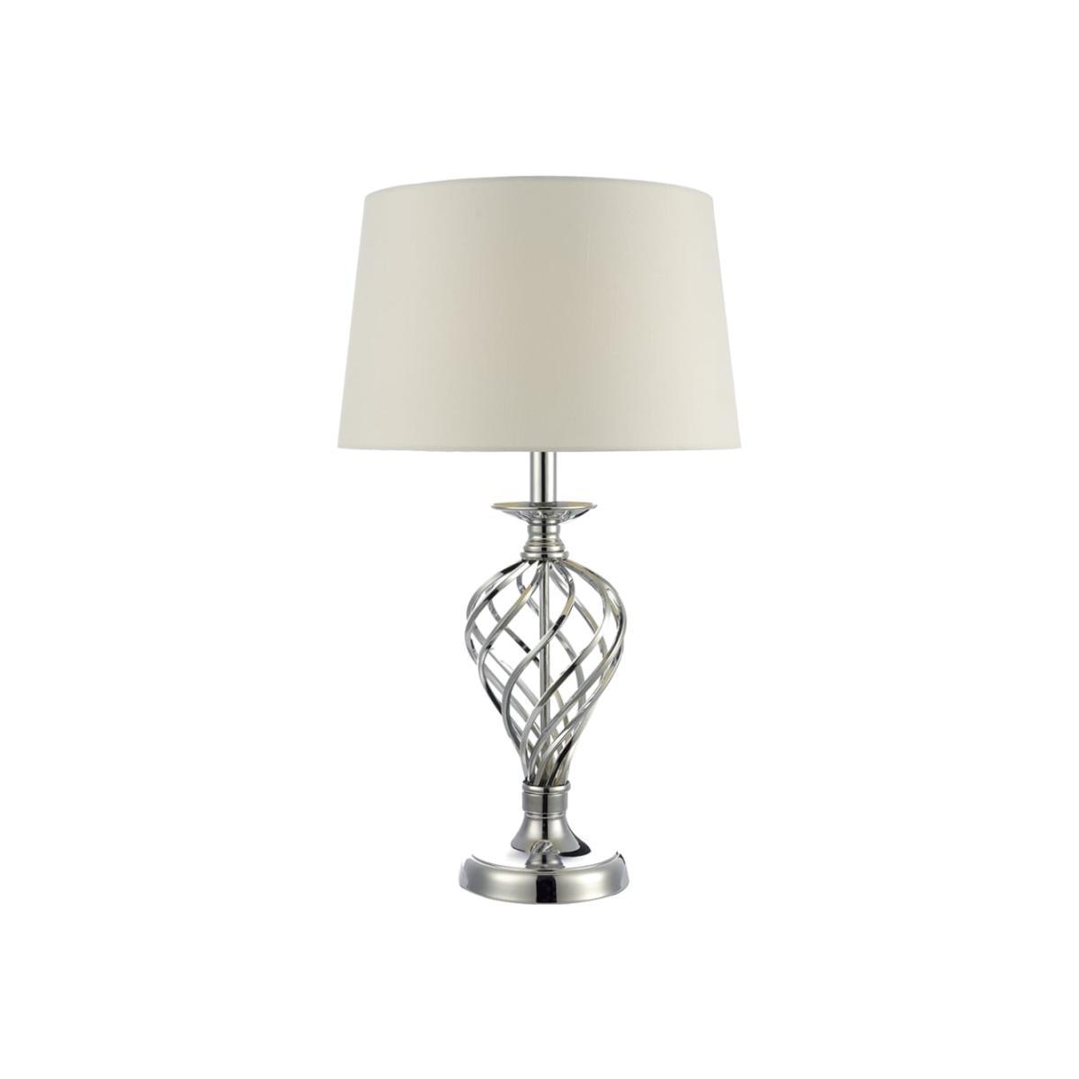IFFLEY is a compact occasional table lamp with a classic twist cage base in polished chrome topped with an ivory faux silk shade. It has a touch switch for easy use and will add light and style to any interior.