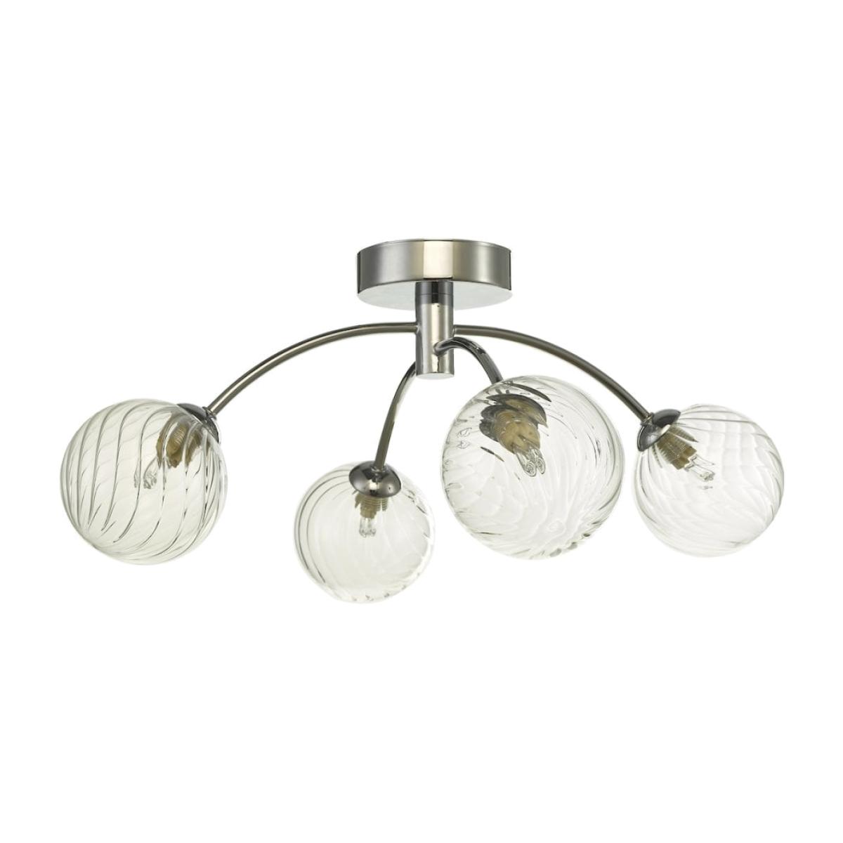 Introducing the dar Lighting IZZ0450-03 Izzy 4 Light Semi Flush, a stunning blend of contemporary design and elegant functionality. This exquisite ceiling fixture features a polished chrome finish that seamlessly complements modern interiors, adding a touch of sophistication to any space. The four twisted glass shades create a captivating visual effect, refracting light beautifully and casting a warm, inviting glow throughout the room. Perfect for dining areas, living rooms, or hallways, the Izzy 4 Light Semi Flush is not just a lighting solution but a statement piece that enhances your decor. Its semi-flush design ensures it fits snugly against the ceiling, making it ideal for spaces with lower ceilings. Easy to install and maintain, this fixture showcases dar lighting's commitment to quality and style. Illuminate your home with the IZZ0450-03 Izzy, where artistry meets functionality in a chic and modern package.