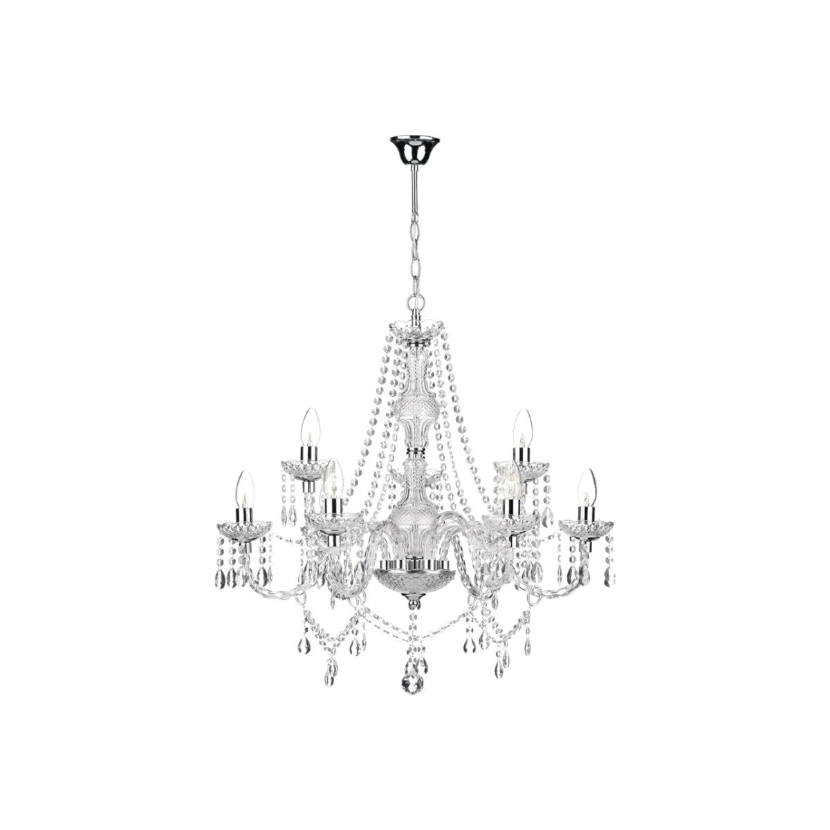 Enhanced by pear-shaped crystal droppers and draping beads, the KATIE Chandelier will look sensational in practically any room in your home. The fitting is fully height adjustable at point of installation. Colour: Clear. Material:Glass / Metal. Maximum Bulb Wattage: 40. Bulb Included: No. Number of Bulbs: 9.