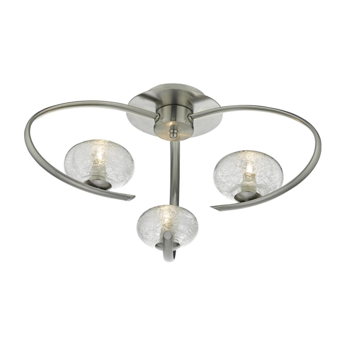 The LEIGHTON three-light semi-flush ceiling light has sweeping satin chrome arms with a sugar cane glass shades. Compatible with our G9 Halogen or LED lamps.