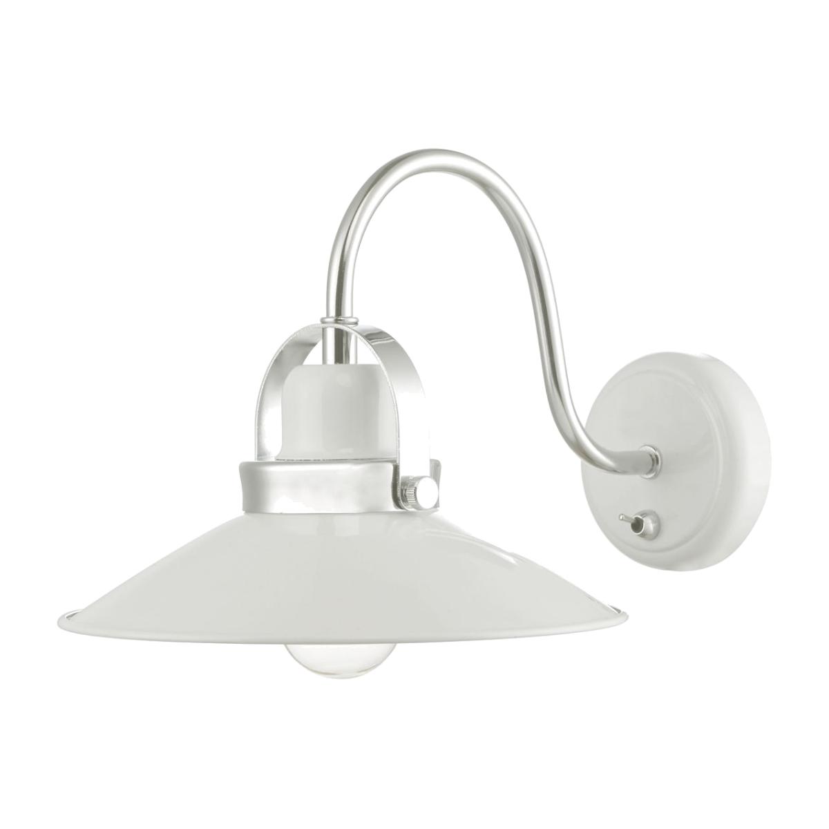A clean wall light with a polished chrome rocker switch. The white gloss shades and chrome detailing offer a clean stripped down softer industrial look. Colour: White. Lamp Holder Type: E14. Bulb Type: Golf Ball. Maximum Bulb Wattage: 40. Bulb Included: No.