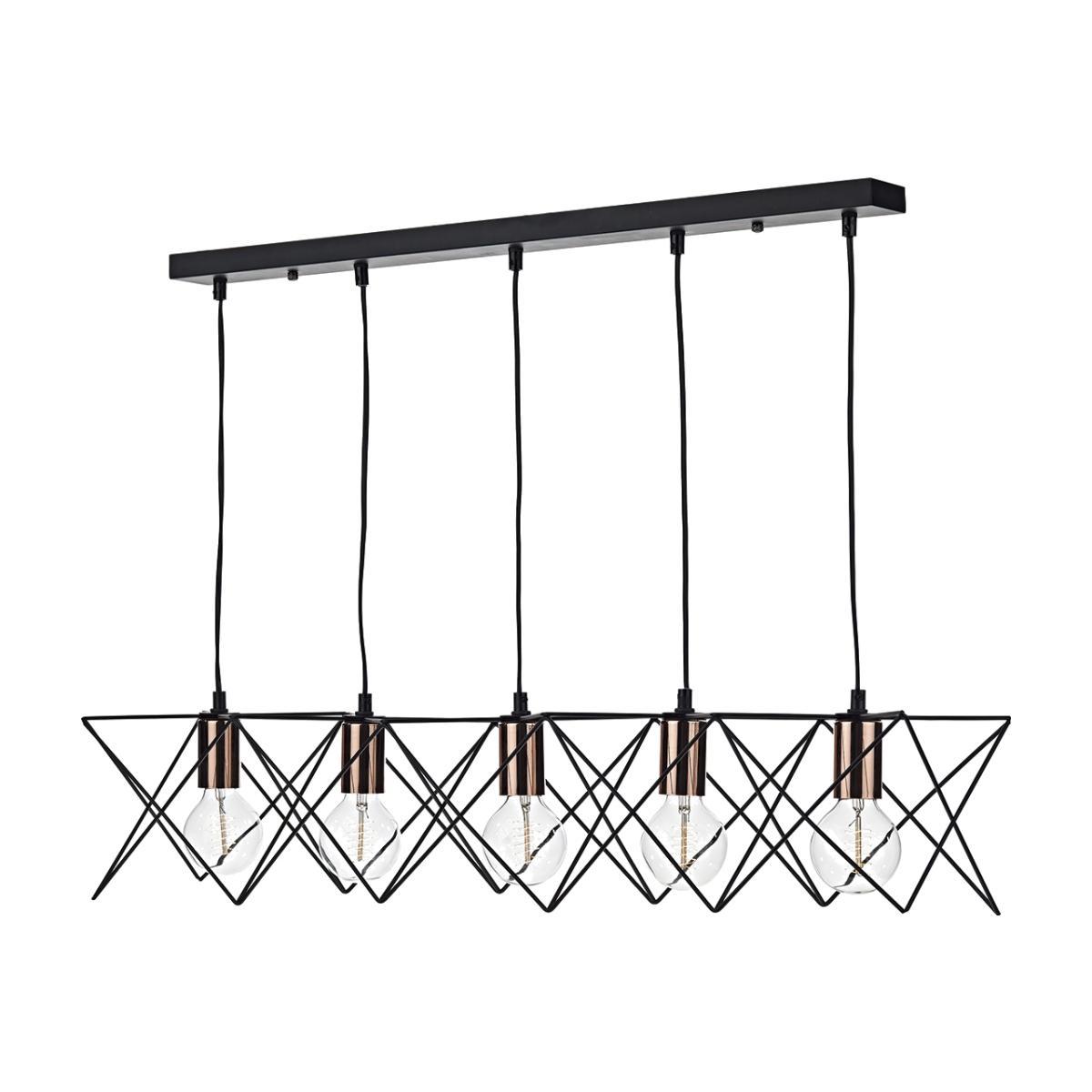 The MIDI comes with a generous (93cm long) over table bar pendant in matt black finish with polished copper lamp holder detail. It is perfect for displaying decorative lamps. With the open metal work frames, this fitting adds ambience to vintage and modern interiors alike. Height adjustable on installation to a maximum of 1. 3 meters.