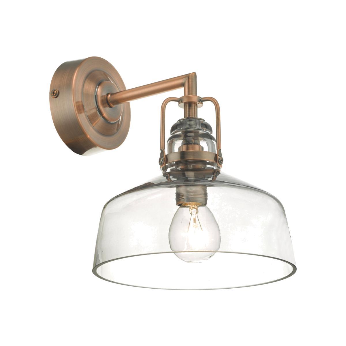 The MILES in-door wall light is an industrial style wall light in an antique copper finish with a lightly smoke tinted glass shade. It is designed to be hard wired into a light switch. It is a larger sized wall light that will give off a good amount of light and add character and atmosphere to a space.