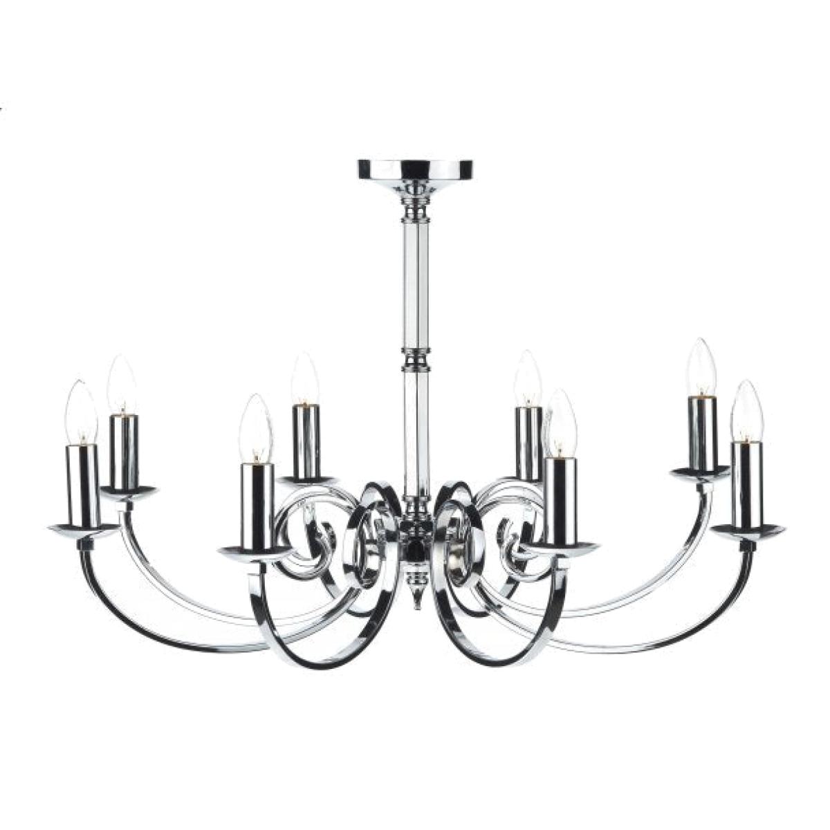 Introducing the dar Lighting Mur0850 Murray 8 Light Dual Mount Pendant, a stunning addition to any contemporary space. Featuring a sleek polished chrome finish, this pendant light exudes sophistication while offering versatile installation options. With its modern design, the Murray pendant can be hung from the ceiling or mounted directly on the wall, making it an adaptable choice for dining areas, kitchens, or living rooms. The eight light sources provide ample illumination, creating a warm and inviting ambiance. Each bulb (sold separately) is beautifully showcased behind an elegant glass shade, enhancing the light's natural glow and ensuring a radiant atmosphere. The sturdy construction ensures durability, while the polished chrome adds a touch of luxury. Elevate your interior design with the dar Lighting Murray Pendant, where style meets functionality. Perfect for those who appreciate modern aesthetics, this dual-mount fixture is a statement piece that effortlessly complements various decor styles. Illuminate your space with elegance and flair!.
