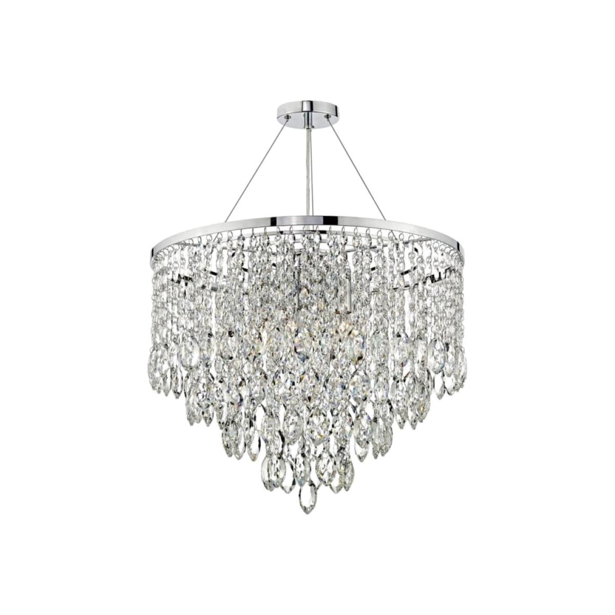 Luxury crystal pendant with beautiful faceted droppers arranged in waterfall style, polished chrome ceiling plate. 5 lights provide great sparkle for this centre piece. Height adjustable on installation. Suitable for retro fit LED lamps. Colour: Crystal. Lamp Holder Type: E14. Bulb Type: Candle. Maximum Bulb Wattage: 40. Bulb Included: No.