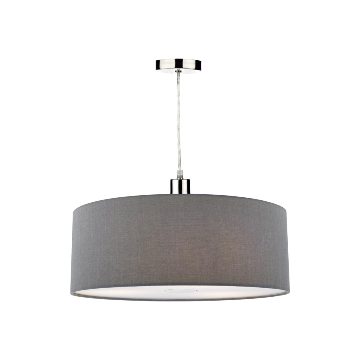 The 60cm Ronda is a beautiful, extra-large drum shade pendant in smooth faux silk in a classic slate grey with white lining. This non-electric pendant is finished with a soft white acrylic diffuser with chrome disc detail. The shallow drum shade will add elegant simplicity. Colour: Grey. Lamp Holder Type: to fit E27 (non elec) + Reducer. Bulb Type: GLS. Maximum Bulb Wattage: 60. Bulb Included: No.