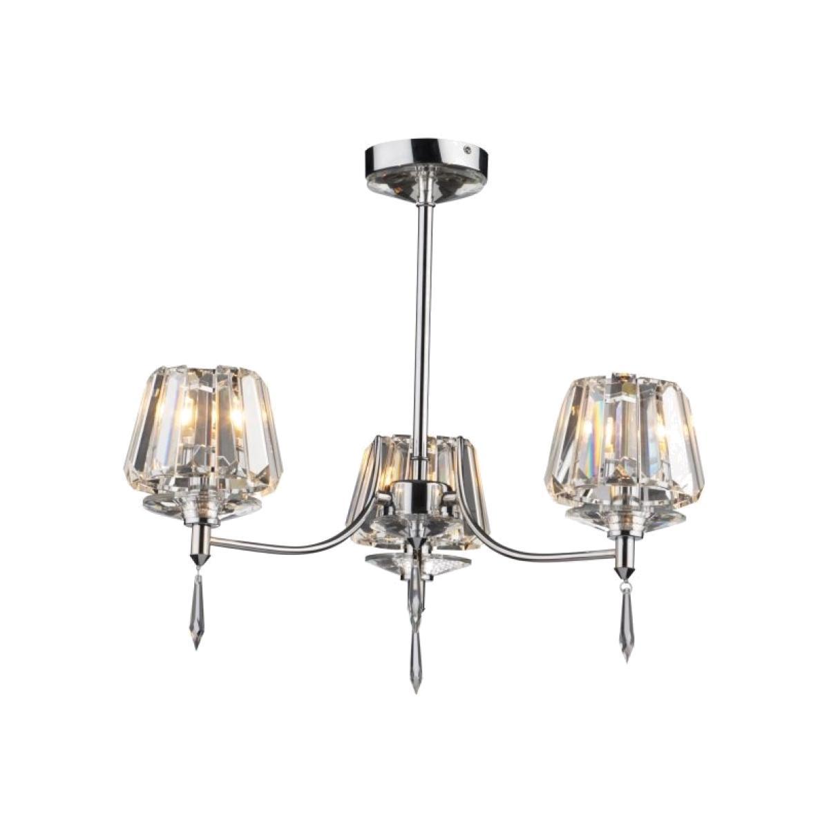 The SELINA 3 Light Semi Flush fitting has a polished chrome frame, crystal glass shades and decorative droppers.
