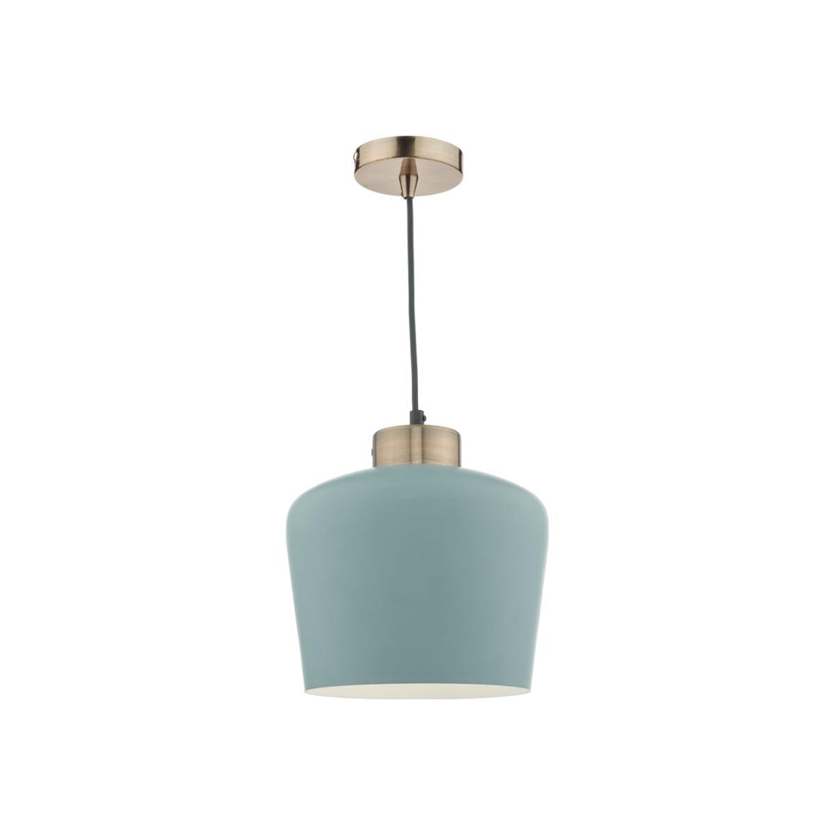 The SULLIVAN is a beautifully simple pendant, in a lovely soft blue/green colour. It comes with complementing antique copper detail and ceiling cup. Supplied with 1m of fabric cable which can be shortened on installation.