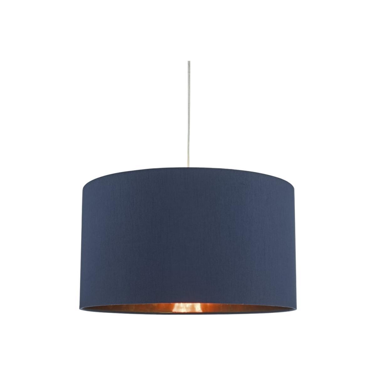 dar lighting Tim6523 Timon Faux Silk Easy Fit Drum Pendant Shade Navy Blue/Copper