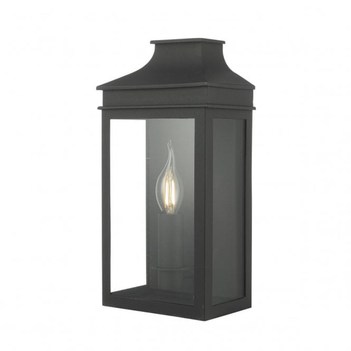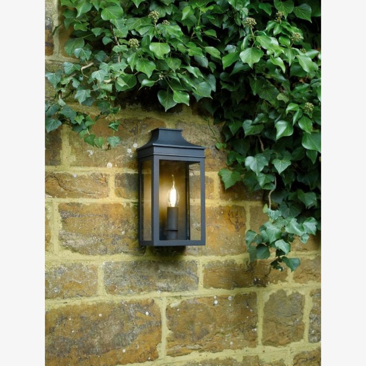 The Vapour single light outdoor wall light is a contemporary take on the traditional coach lantern design. Wall mounted, this ornamental yet practical lantern is made of steel finished in a tough matt black powder coating, inside and out, which provides durability in the British weather. The three clear panels are tempered glass for safety. IP44 rated for safe outdoor use.