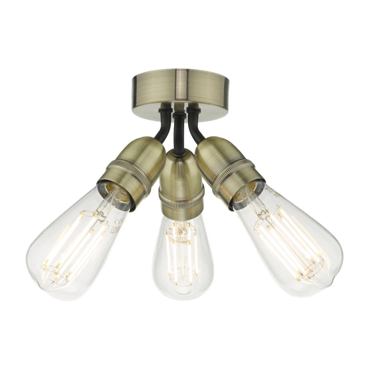 The YAO 3 Light Flush ceiling light is compact in size (diameter 18cm) but capable of providing a great light level from its 3 lamp heads. Finished in antique brass with authentic vintage detailing this ceiling fitting has a great deal of character and understated style. The arms are fixed giving an all round light out-put and as it sits close to the ceiling it is a great option for low ceilings or where space is limited. The YAO 3 Light Flush ceiling light is a versatile in-door light fitting that will brighten any space including the kitchen, living room, hallway, bedroom or work space. The 3 lamps can give a great level of lighting for work areas and this small fitting is especially useful for throwing light into darker corners or areas that suffer from shadowing. Colour: Brass. Lamp Holder Type: E27. Bulb Type: GLS. Maximum Bulb Wattage: 60. Bulb Included: No.