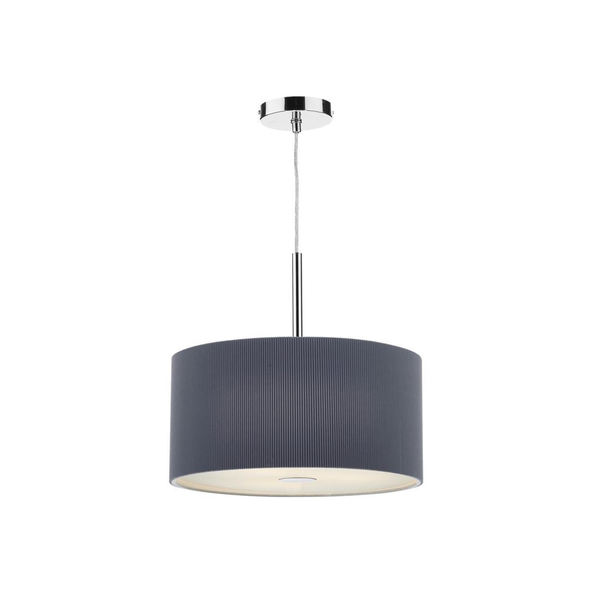 The ZARAGOZA 40cm 3 Light Pendant has a polished chrome ceiling plate and comes complete with a grey micro pleat shade and frosted acrylic diffuser.
