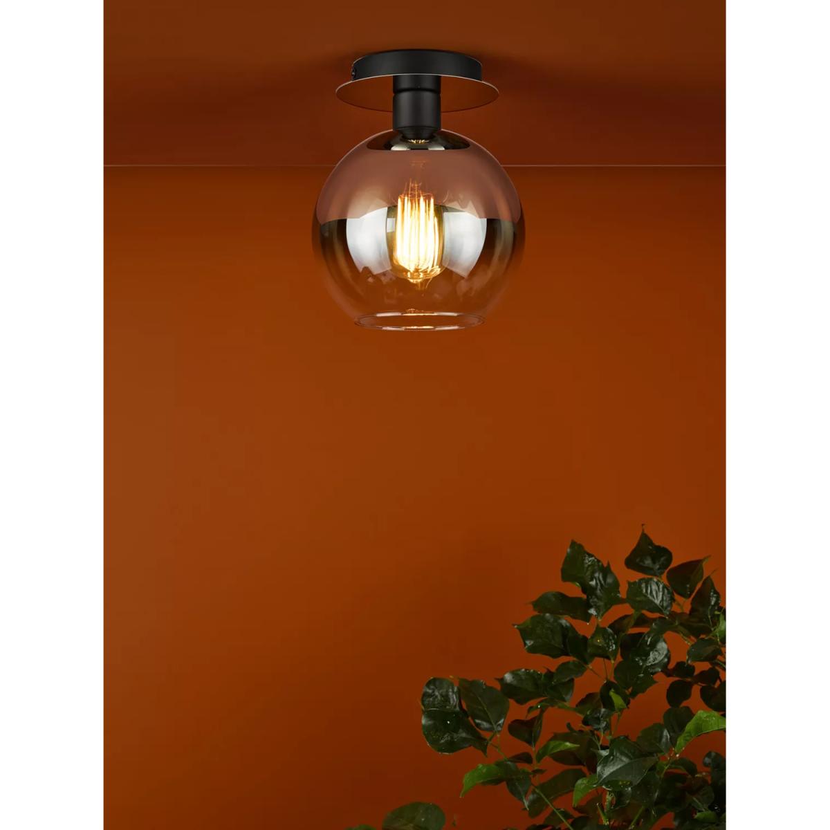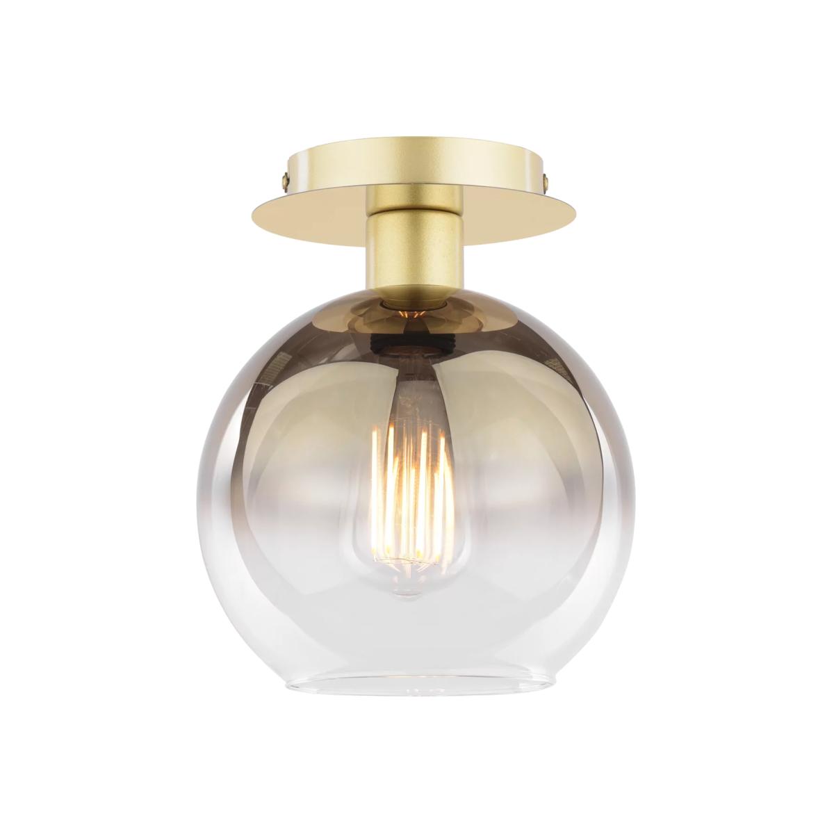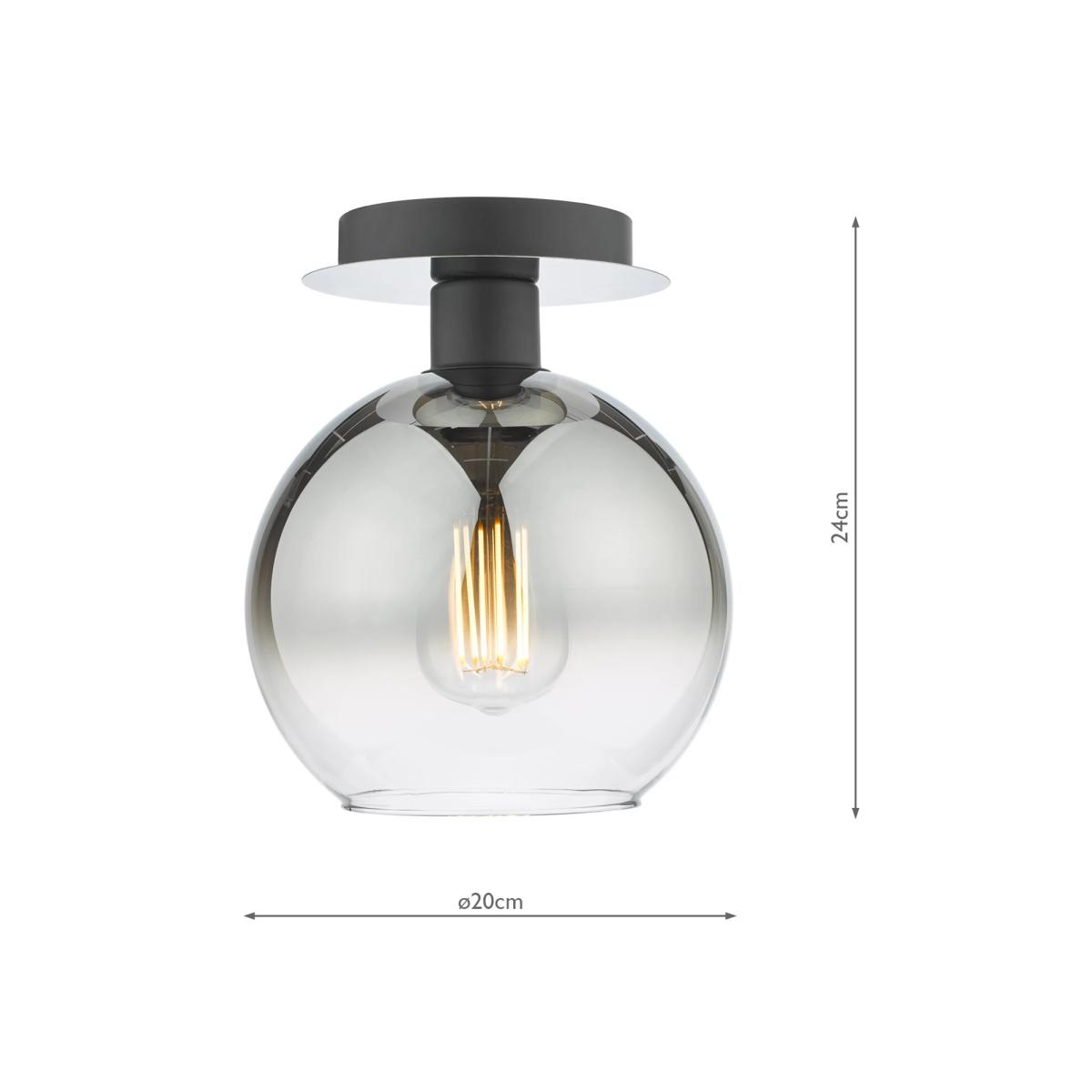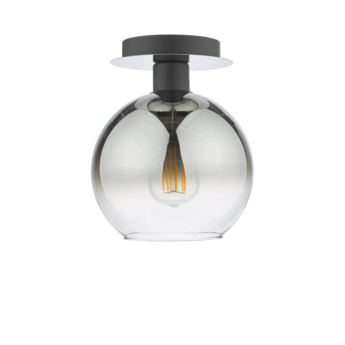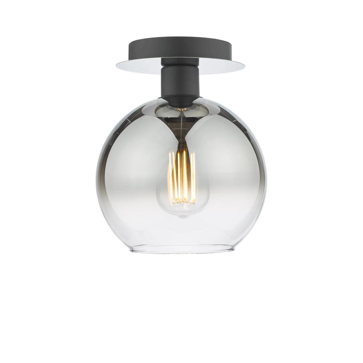 The Lycia is a semi-flush ceiling light with a mirrored top plate and ombre glass globe. This simple modern light effortlessly integrates into any space, offering tasteful illumination while infusing a touch of contemporary style into your decor.