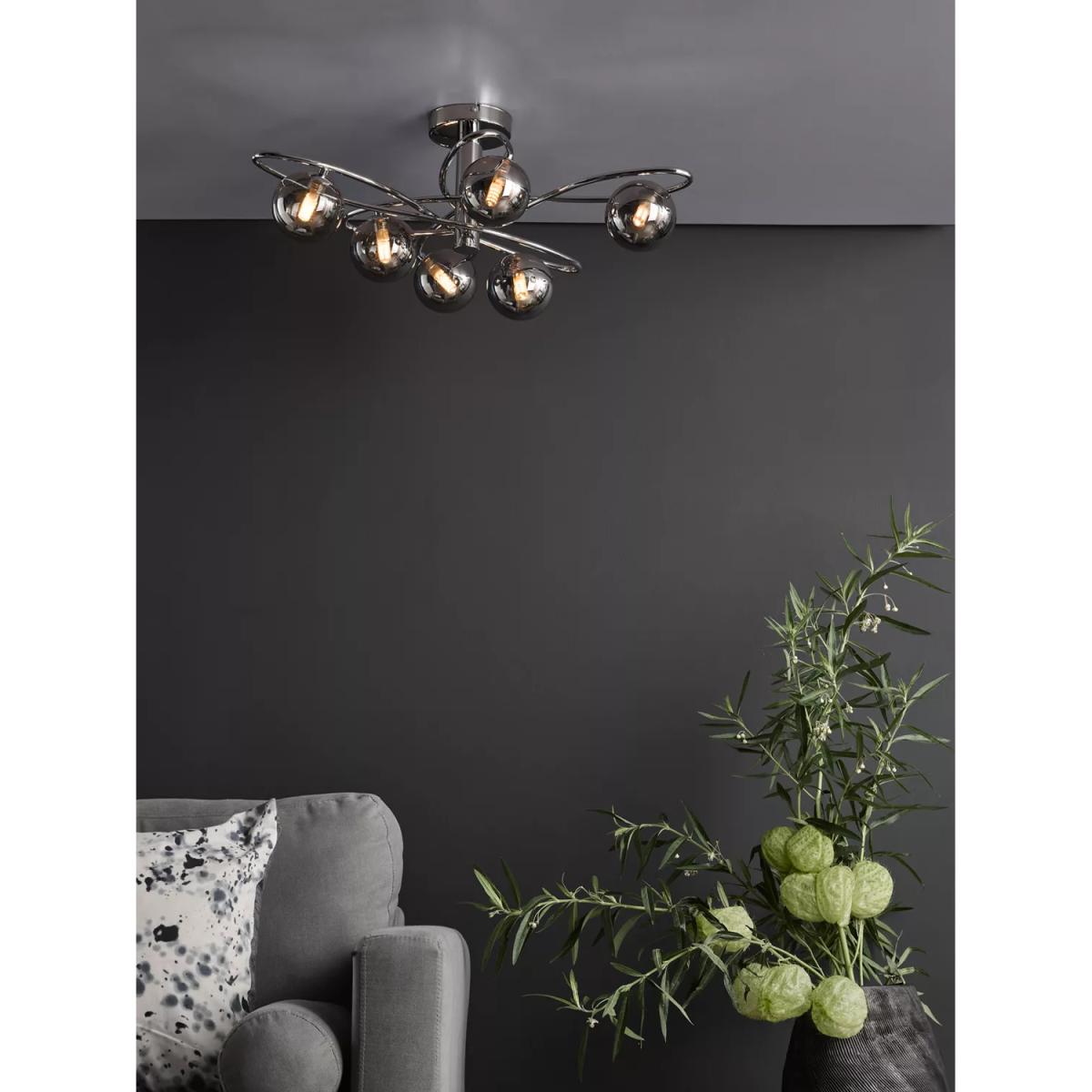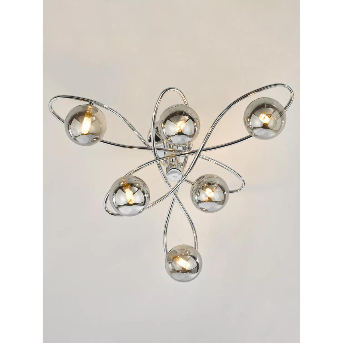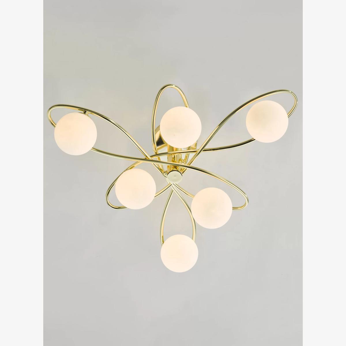 The Lysandra six arm semi-flush ceiling light is a contemporary light with glass shades nestled in polished curves, its fluid shape is almost musical. The Lysandra is ideal for any space, where a lot of style is required. Suitable for low ceilings.