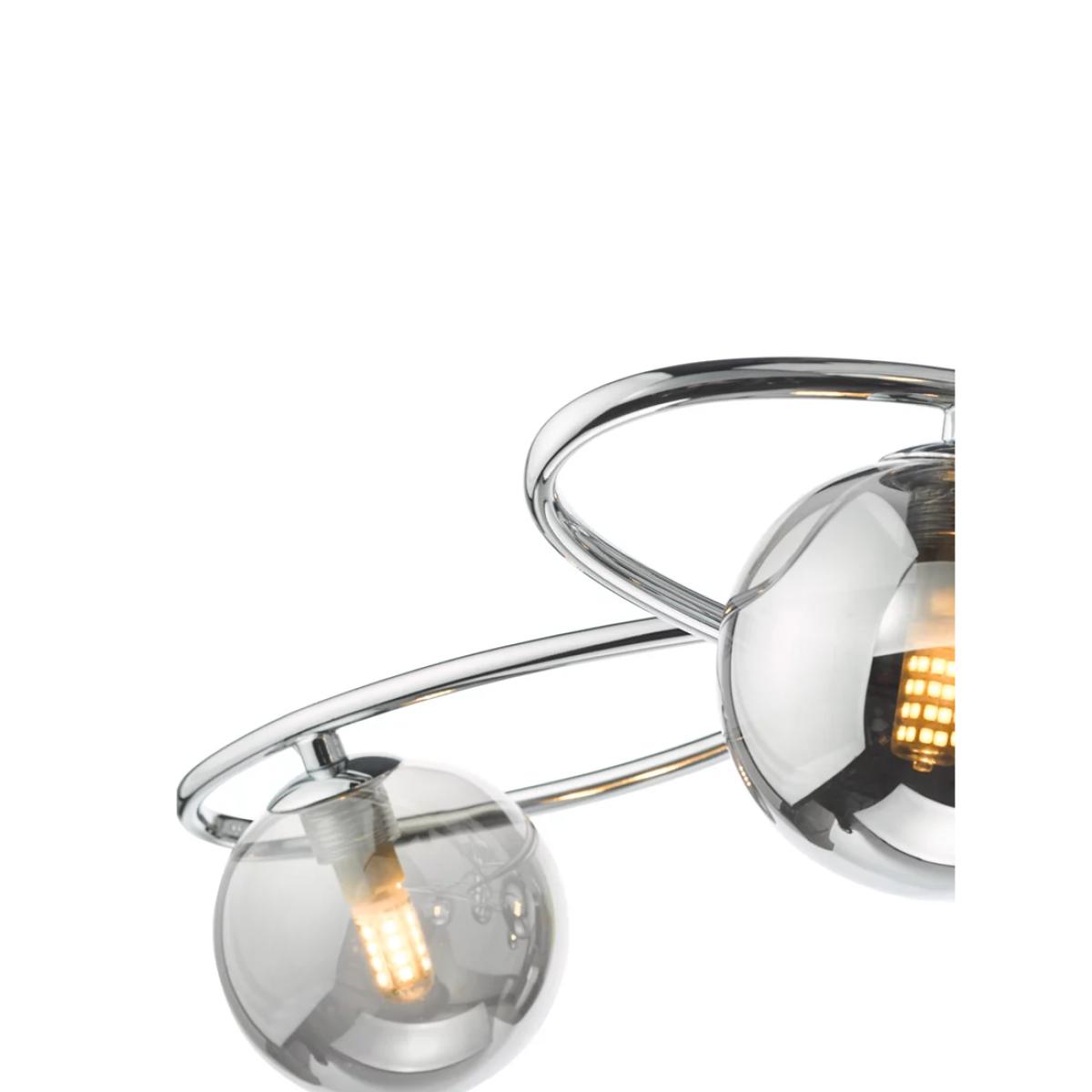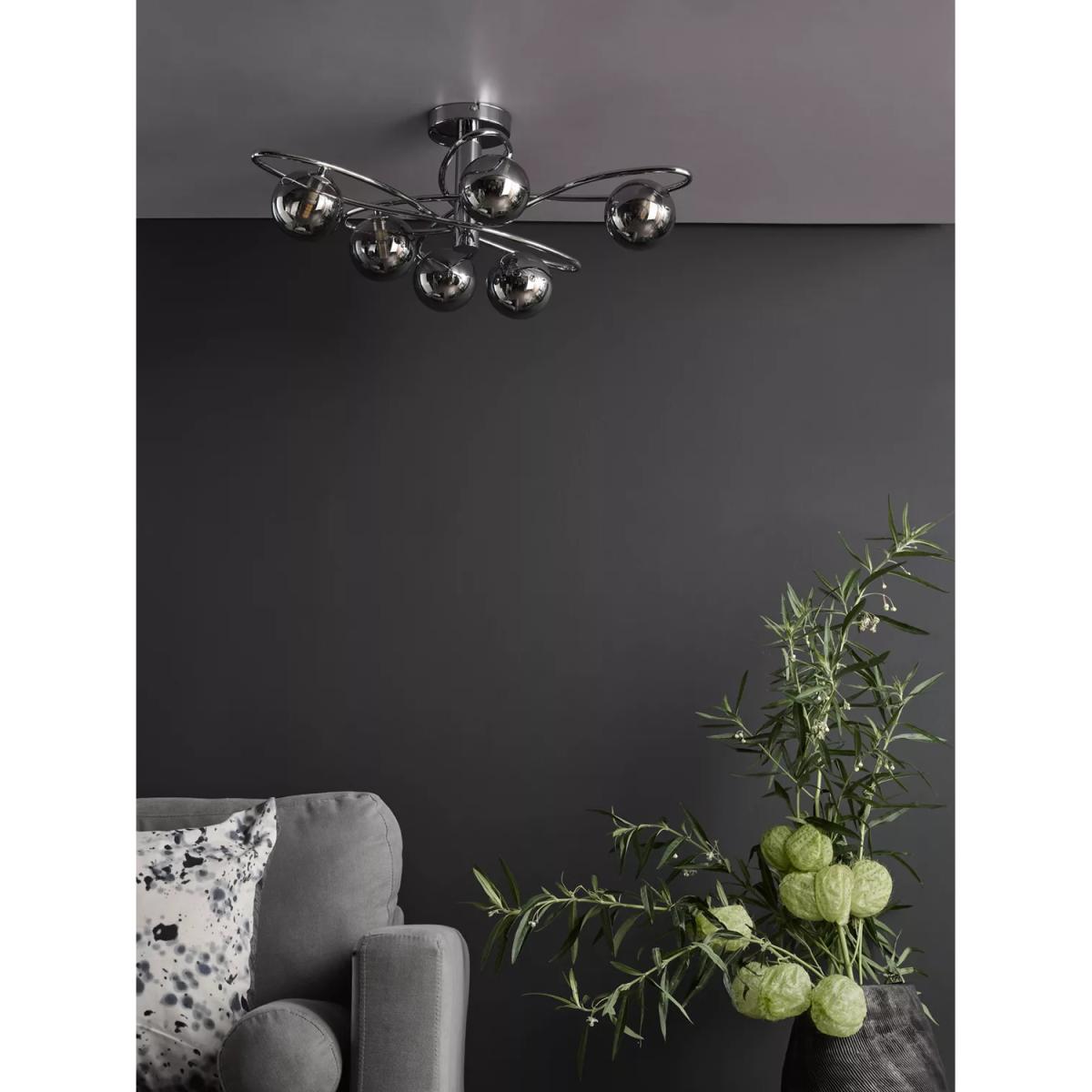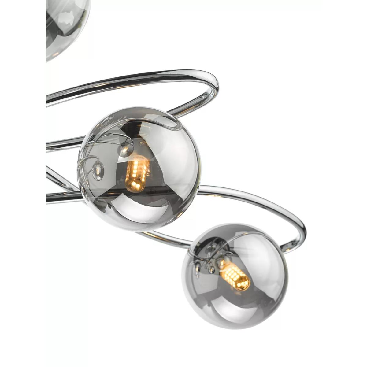 The Lysandra six arm semi-flush ceiling light is a contemporary light with glass shades nestled in polished curves, its fluid shape is almost musical. The Lysandra is ideal for any space, where a lot of style is required. Suitable for low ceilings.