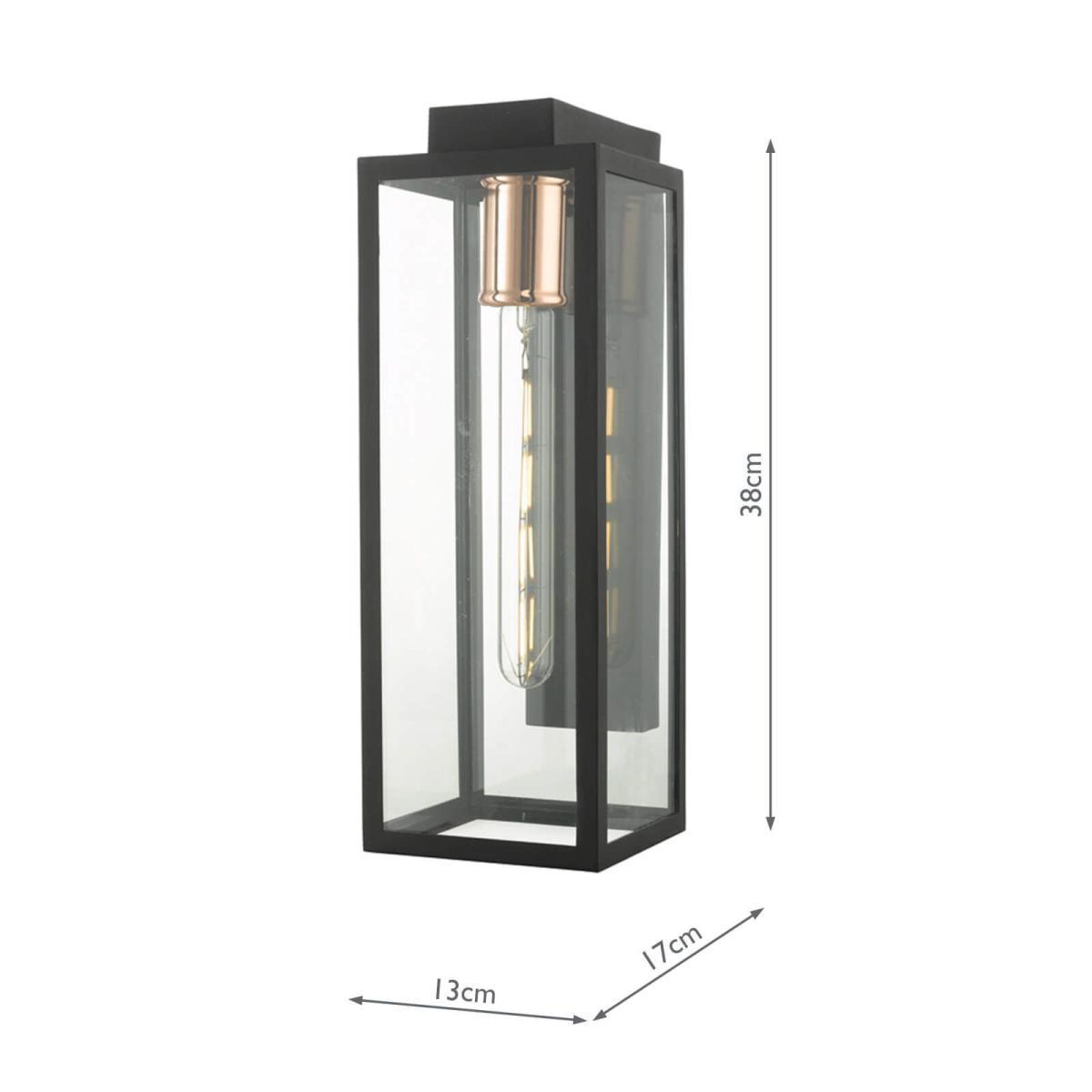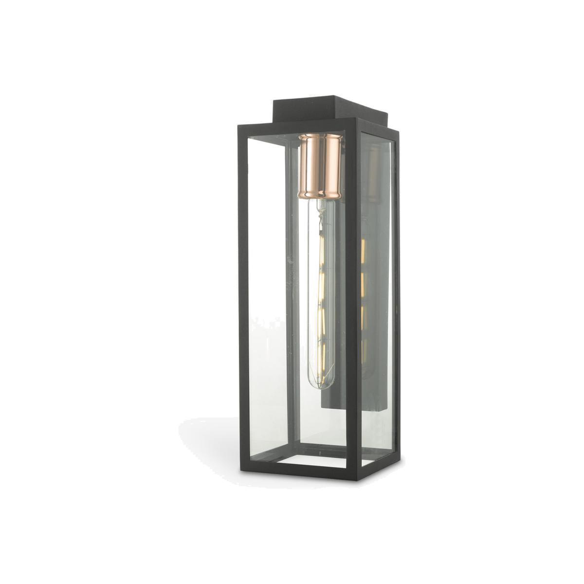 This wall light is designed with clear, tempered glass panels which are supported by a durable metal frame in a matt finish. It's a sleek and functional option for illuminating your outdoors and its IP43 rating ensures its suitability outdoors.