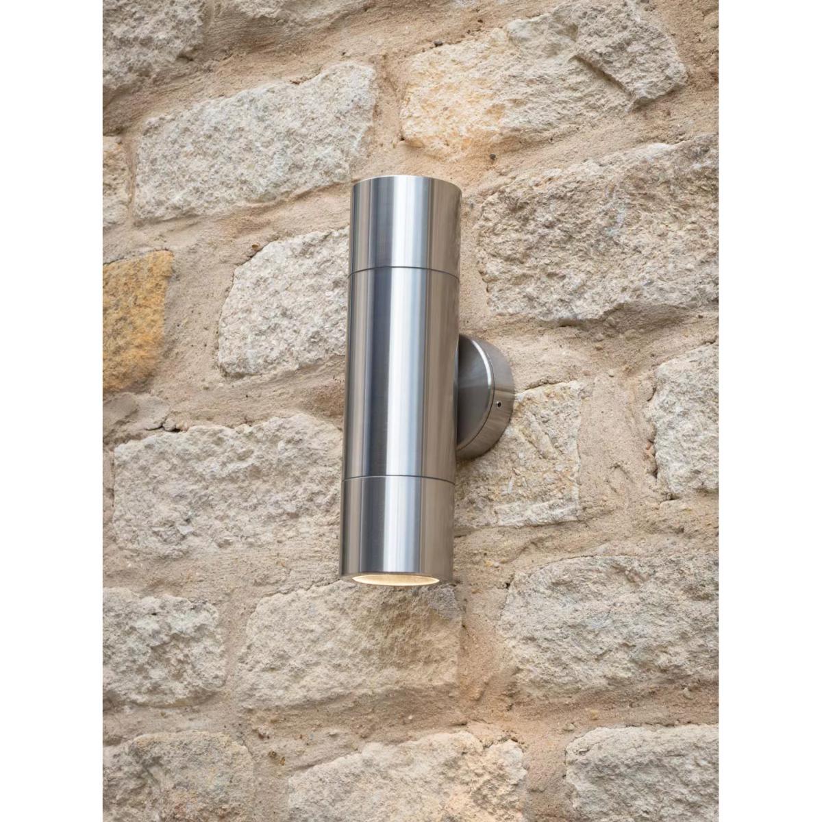 This smart outdoor wall light is supplied with two replaceable LED bulbs that cast a wash of light up and down your wall. The Silver and Black options are made from sturdy aluminium cylinders in a polished finish and the Brass option is made from solid brass. Highly durable, the IP65 rating ensures its resistance to moisture and dust outdoors.