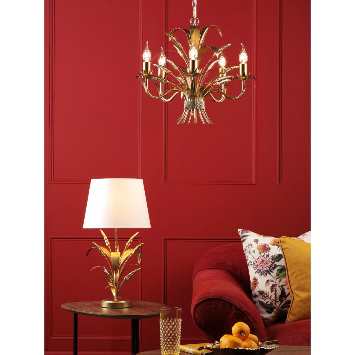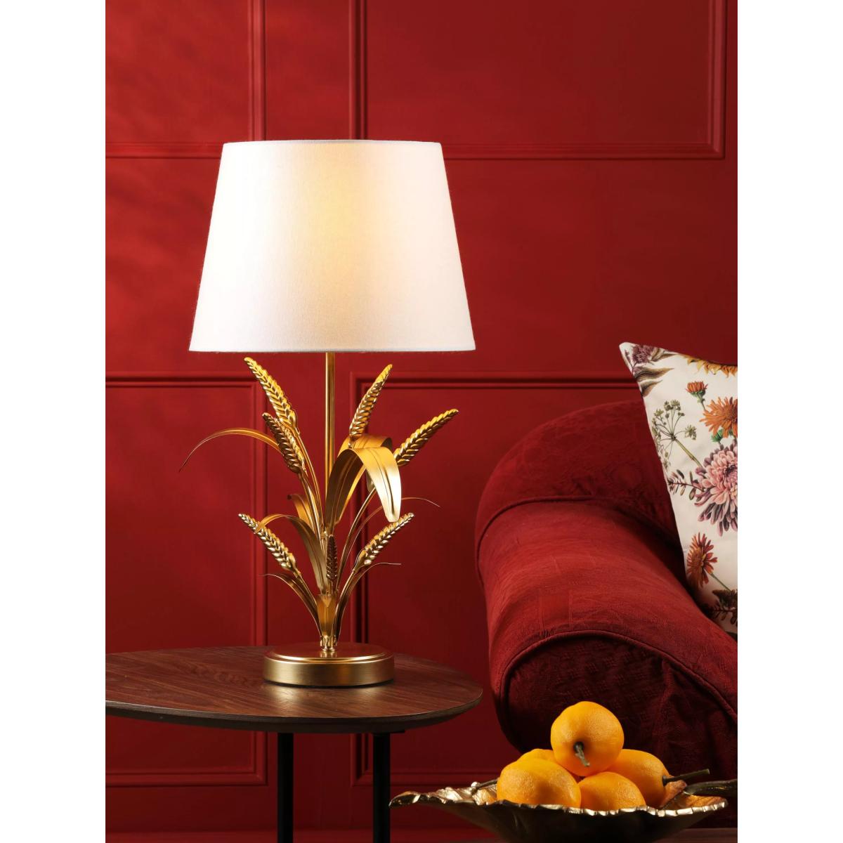 Bring a touch of Italian-inspired elegance to your living space with the Phaedra table lamp. This stunning gold-toned piece features delicate, hand-applied wheatsheafs and leaves, evoking the timeless charm of classic toile lighting. The painted gold-effect finish adds a luxurious sheen, making it a captivating focal point in any room. Whether placed on a side table, desk or bedside cabinet, this lamp will cast a warm, inviting glow while doubling as a sophisticated decorative accent. For those who love to coordinate, the Phaedra is part of a complete collection, allowing you to create a cohesive look throughout your home. The Phaedra comes with a Natural Linen tapered drum shade.