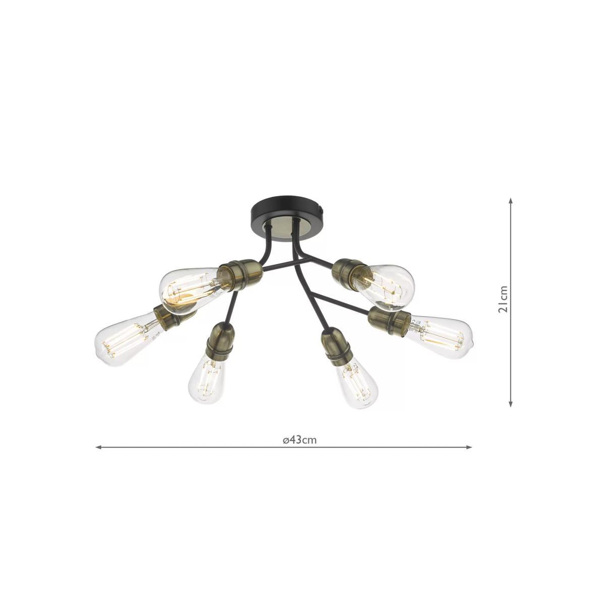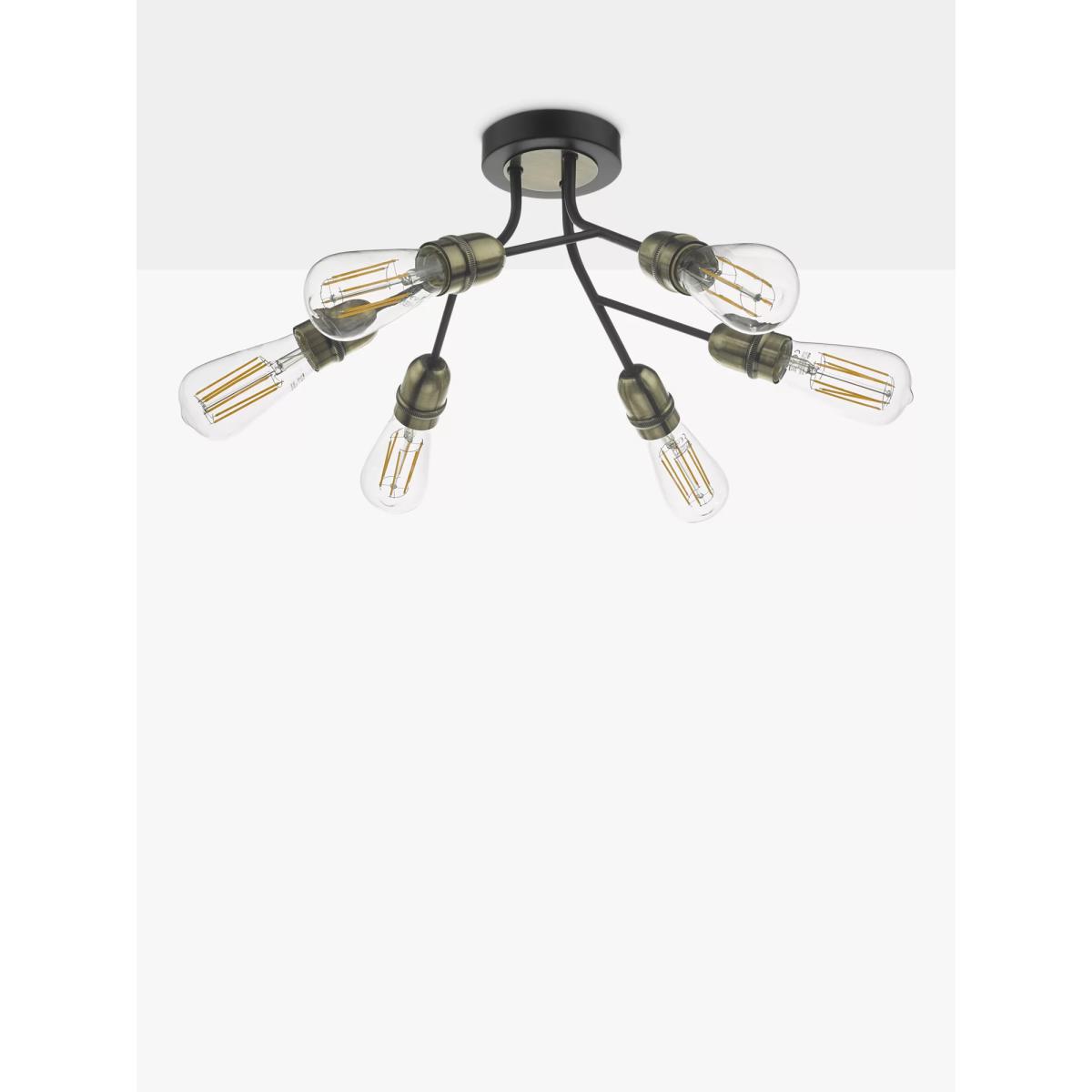 A minimalist design with an industrial edge thanks to antique brass finished metal, this ceiling light is easy to style around your home. Semi-flush and suited in rooms with restricted ceiling height, it requires six bulbs in total and we recommend vintage bulbs or bulbs with a decorative filament to complete the look.