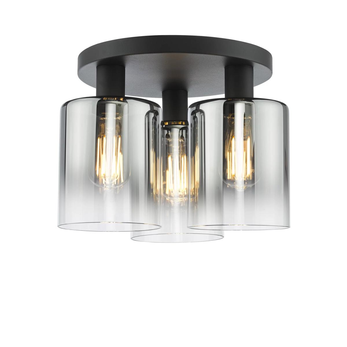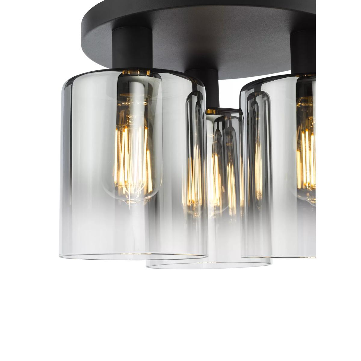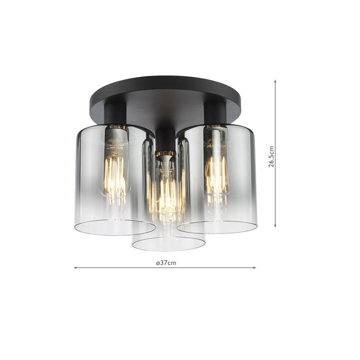 Där Savannah Flush 3 Arm Ceiling Light, Black/Smoked