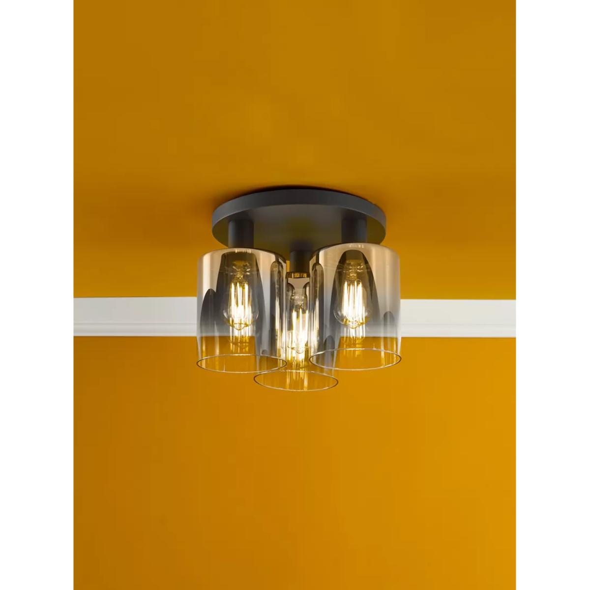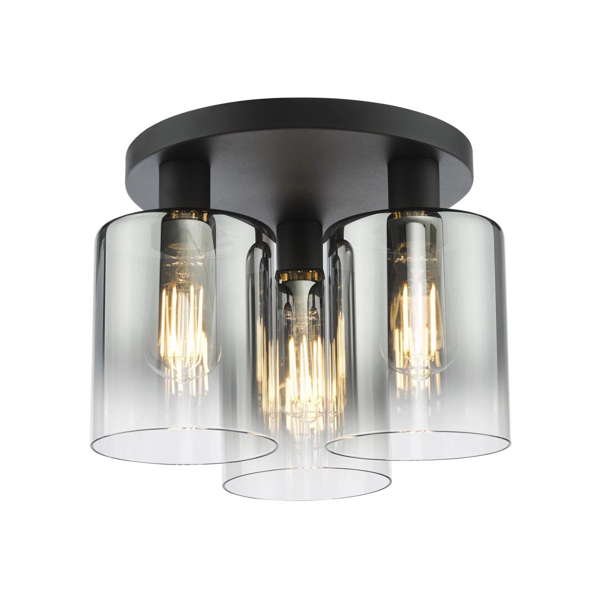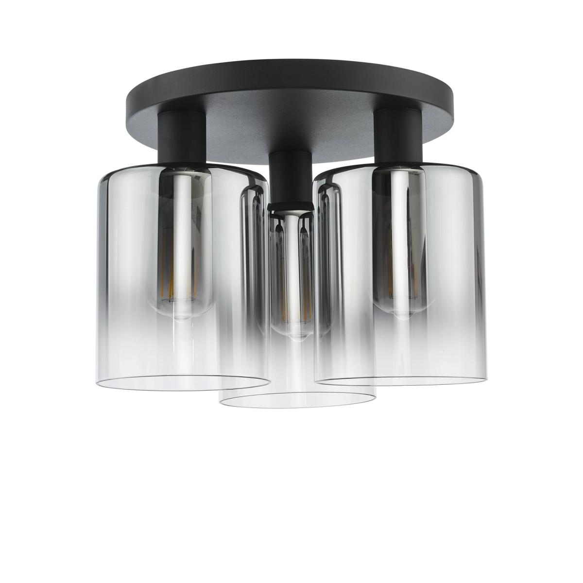 Där Savannah Flush 3 Arm Ceiling Light, Black/Smoked