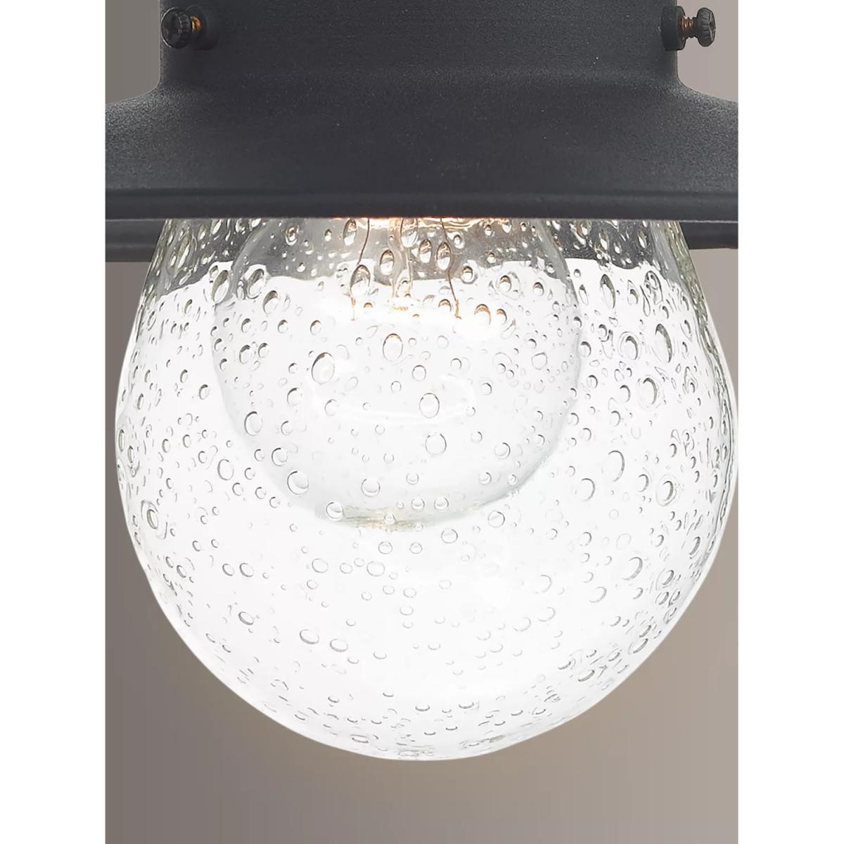 The aged finish of this wall light gives it a rustic, industrial-inspired look. With a single arm design, it provides a direct wash of light and its IP44 rating means it's suitable for installation both indoors and outdoors. The lamp cover is made from seeded-glass for a tactile edge.