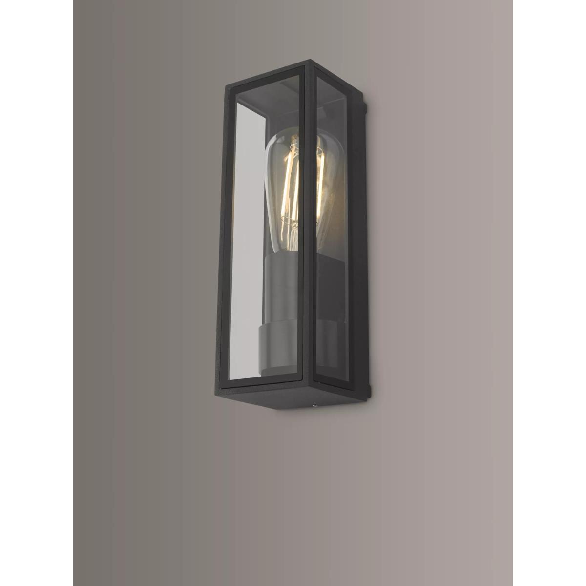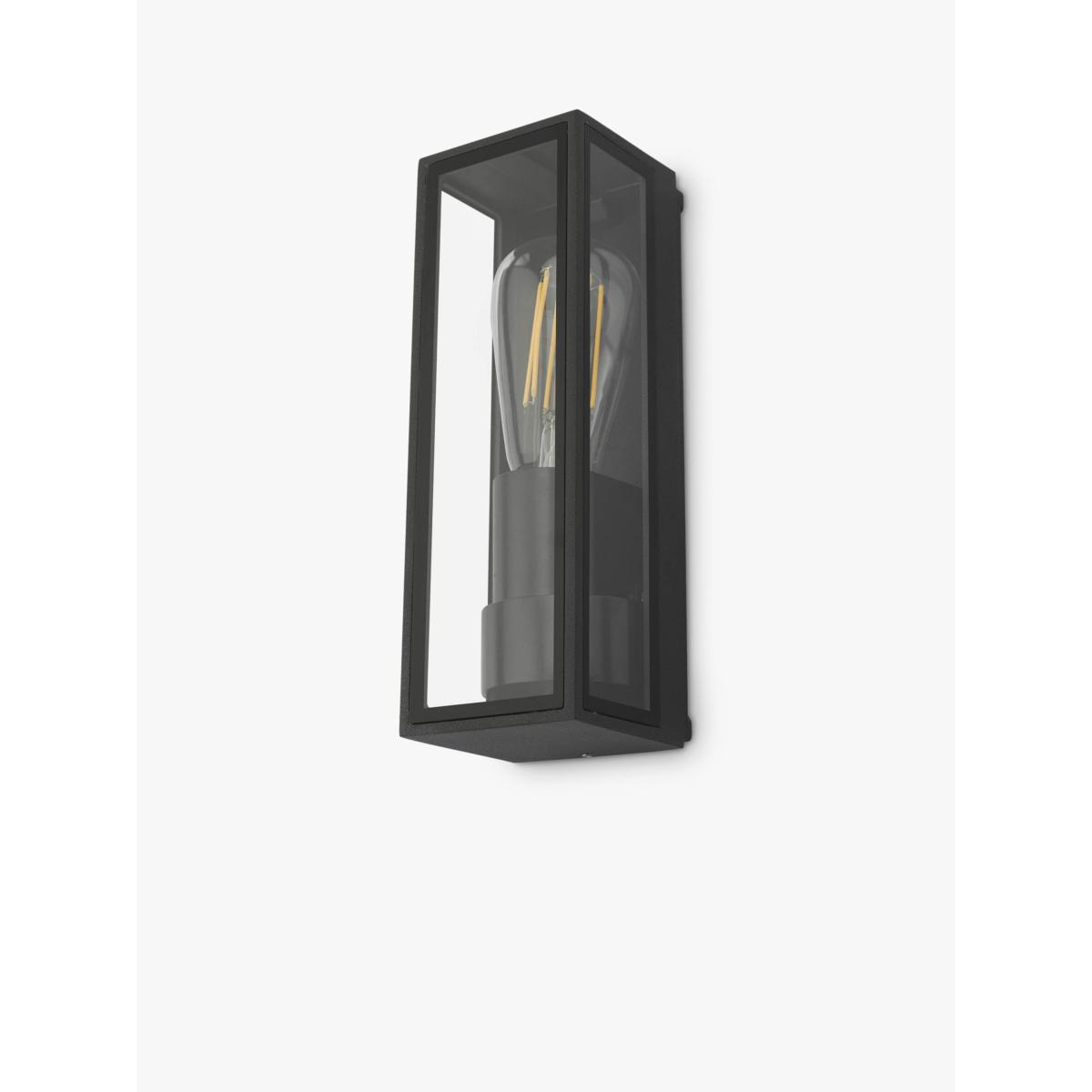 Simple and functional, this wall light is made from die-cast aluminium in a lantern-style, box shape. Clear glass panels make it ideal for showing off vintage bulbs and it will enhance your outdoor space with an ambient glow. Its IP65 rating ensures a resistance to moisture and dust.