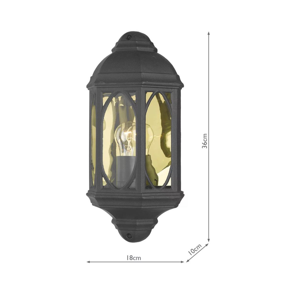 Illuminate your outdoor space with this wall light, which is made from sturdy metal in a matt finish with bevelled, polished glass panels. It provides a warm glow of light and will look especially eye-catching when installed on a period property. IP44 rated and suitable for installation outdoors.