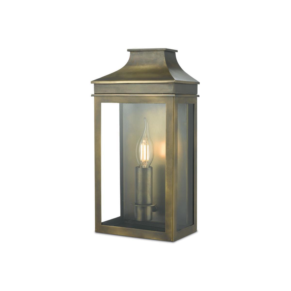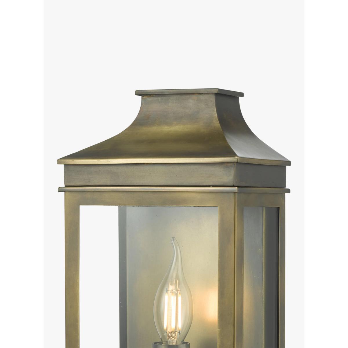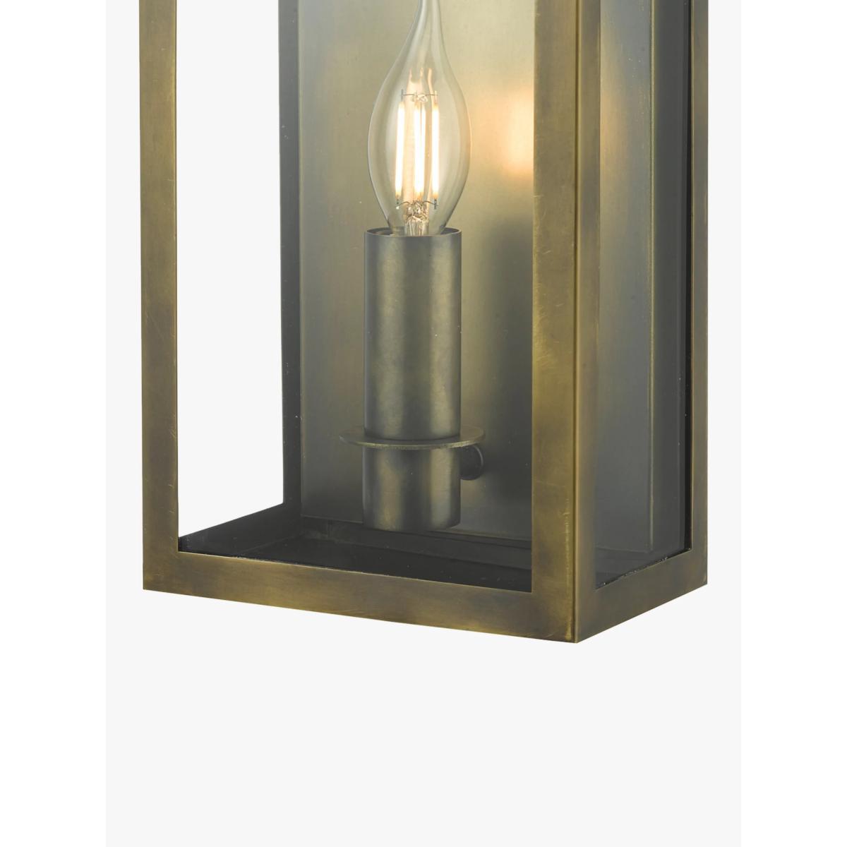 This is a versatile outdoor light with a design that offers a contemporary take on a traditional coach lantern. With an IP44 rating that ensures its durability in outdoor environments and against splashing water, it requires one bulb and provides a warm glow of light. The Weathered Brass option has a hand finished brass finish and the Black option is finished in a tough, matt black powder coat.