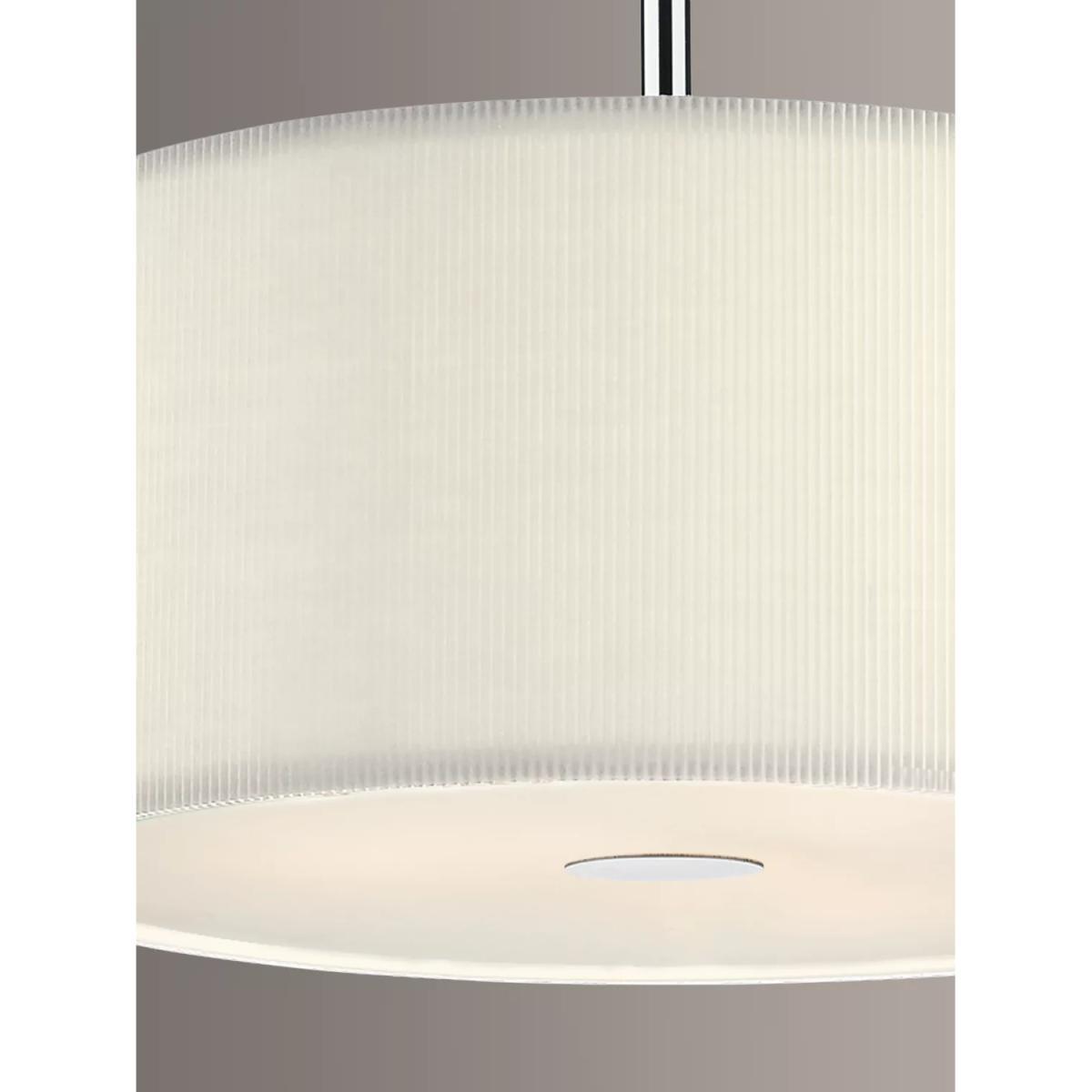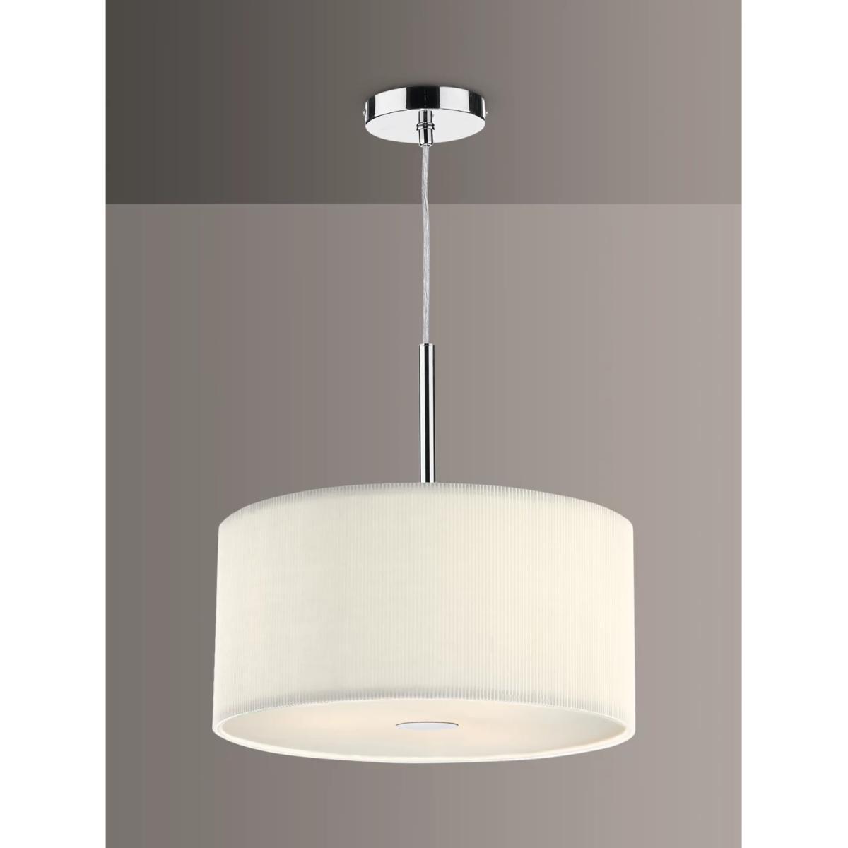 A 3 light pendant with a polished chrome ceiling plate, complete with an attractive and on-trend micro pleat shade and acrylic diffuser. Zaragoza is is supplied with a 150cm cable and can be adjusted for height at point of installation.