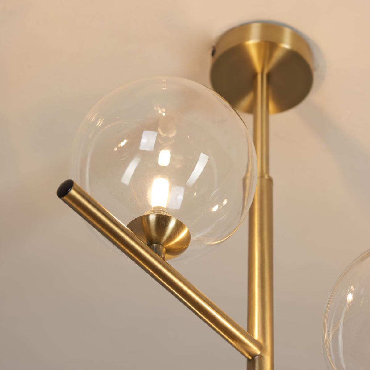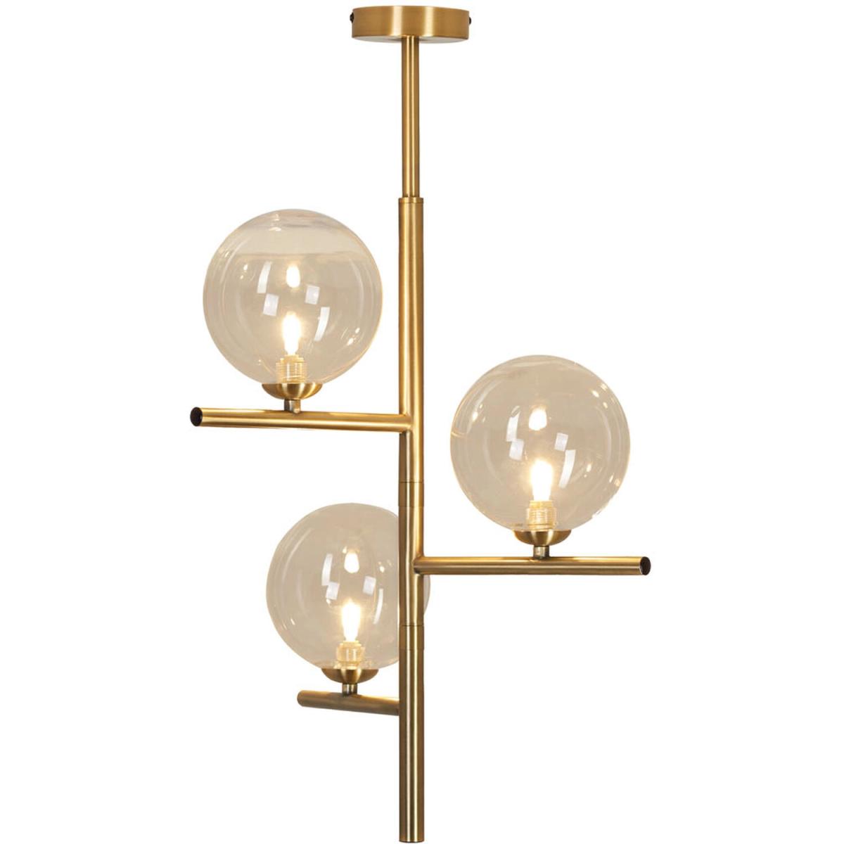 A beautifully unique light fixture for your home, the Darcie 3 Light Ceiling Fitting is sure to add an elegant and antique vibe to your decor. This ceiling light features three large glass spheres holding bulbs that are set onto golden bars angled out from the centre pole.