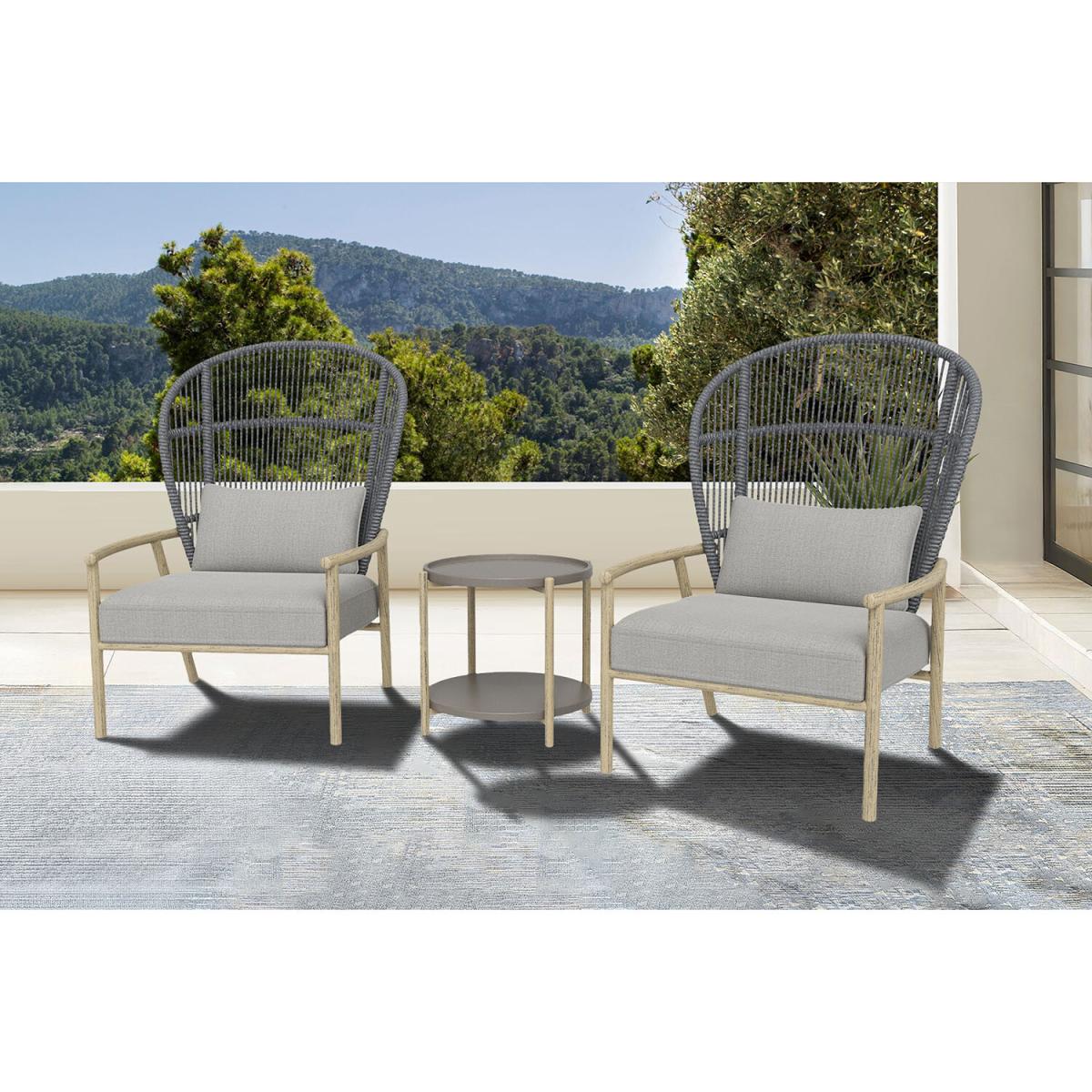 The Darcie Bistro Set is the perfect choice for compact gardens, patios, or balconies, offering a blend of style and comfort in a space-saving design. Featuring modern wicker chairs with plush, deep-seated cushions, this set provides the ultimate relaxation experience. The accompanying side table is ideal for enjoying your morning coffee or evening drinks while soaking up the sun. With its elegant steel frame, finished with a hand-painted wood effect, and stylish all-weather PE wicker rope wrapping, this set adds a chic touch to any outdoor setting. The wide, comfortable seats and high backs ensure maximum comfort, while the two-tier side table enhances both convenience and style. Whether placed among plants or garden decor, the Darcie Bistro Set is the perfect spot to unwind and enjoy the outdoors.